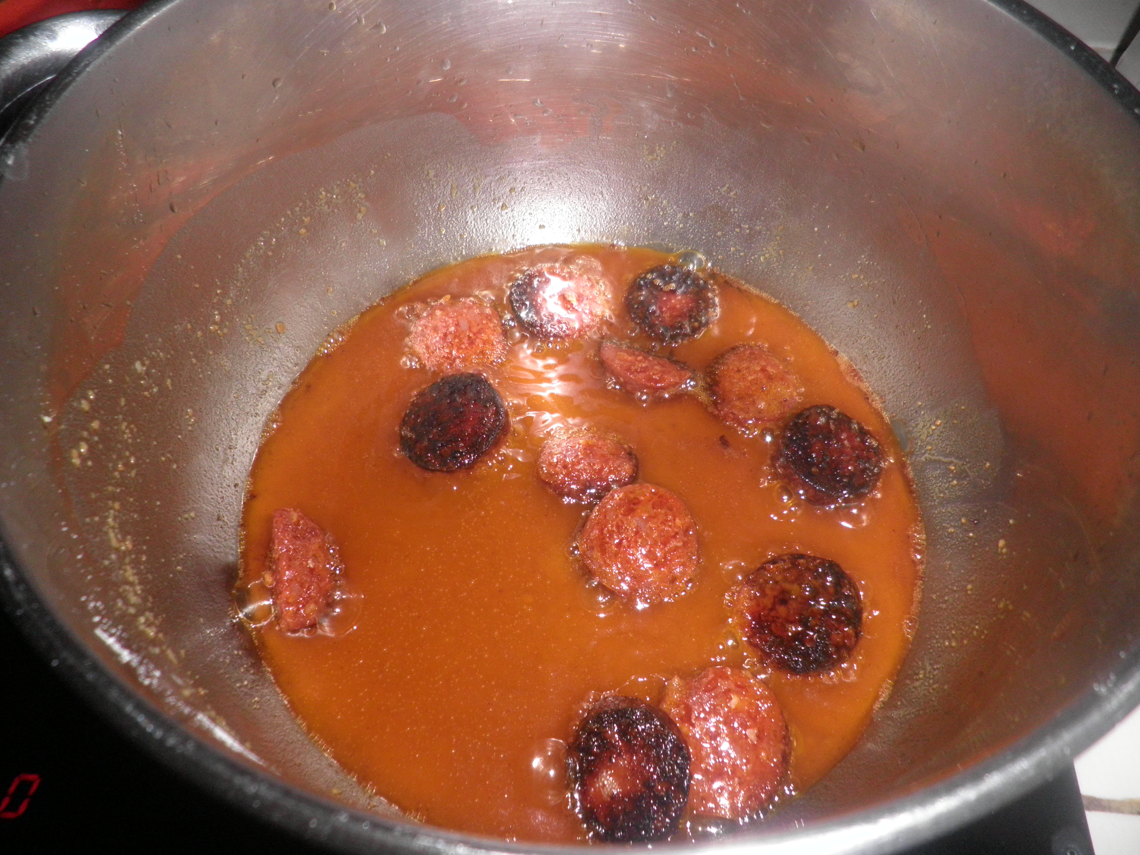 3. Coupez le chorizo en lamelle, puis les mettre dans une cocotte