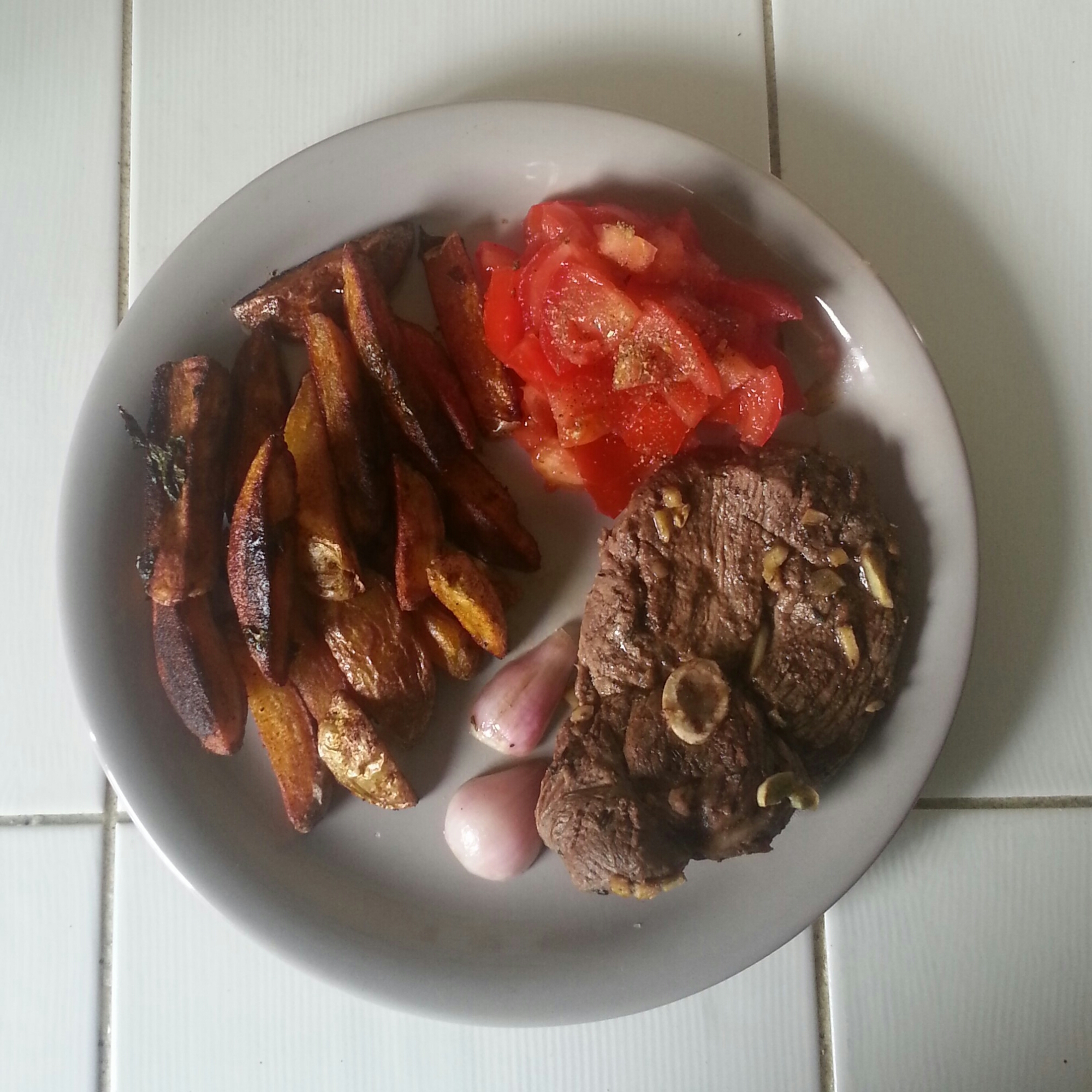 Cette année, j’ai eu la flemme de me lancer dans la cuisson d’un gigot alors j’ai opté des côtes d’agneau plus faciles à préparer et moins longs à cuire. Je les ai accompagné de frites au four.