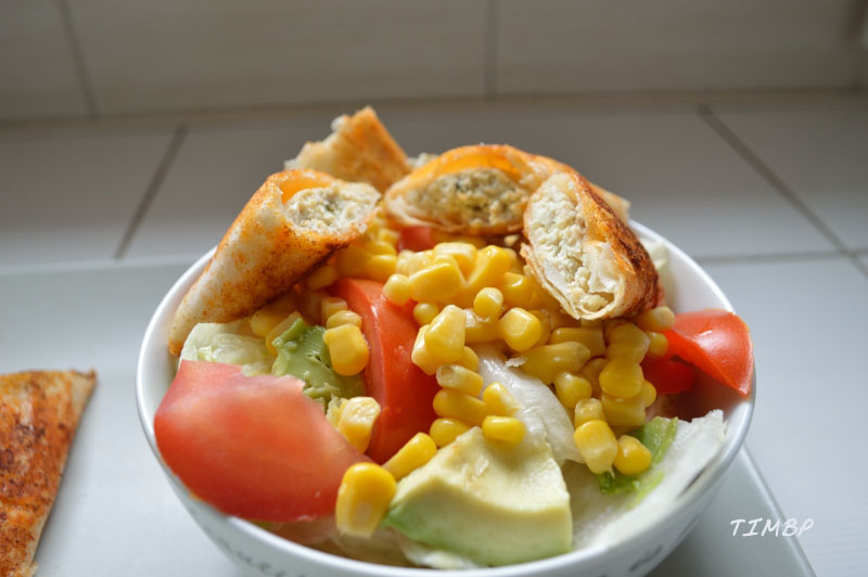 - Mélangez la ricotta, les échalotes et le poulet. Versez le vin blanc et la menthe ciselée. Goûtez épicez à votre goût ou ajoutez une gousse d’ail si le mélange vous paraît trop fade. J’avais fait mariner mon poulet dans un mélange Toco de la marque « Délices de Guyane ». J’ai récupéré le pot dans la B.E. Box.