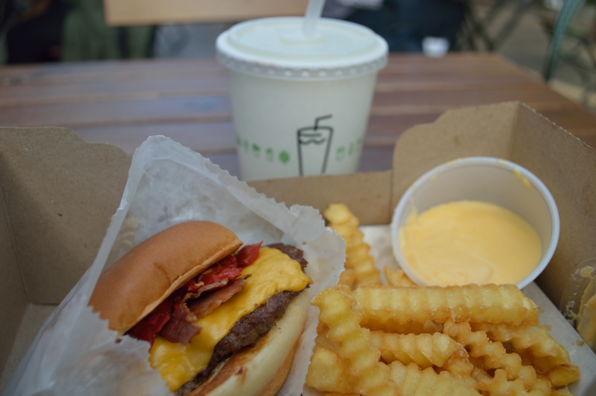 J’ai regardé tellement de photos insta des burgers Shake shack en salivant… Il me fallait absolument les goûter ! La chaîne de restaurant Shake shack propose des burgers, des hot dogs et frites bio. J’ai choisis le SmokeShack (steak haché + cheddar + bacon + « cherry pepper » aka piment). Le burger était excellent: un pain moelleux et une garniture goûtue. Même si j’ai trouvé le burger un peu petit vu le prix (trop vorace).