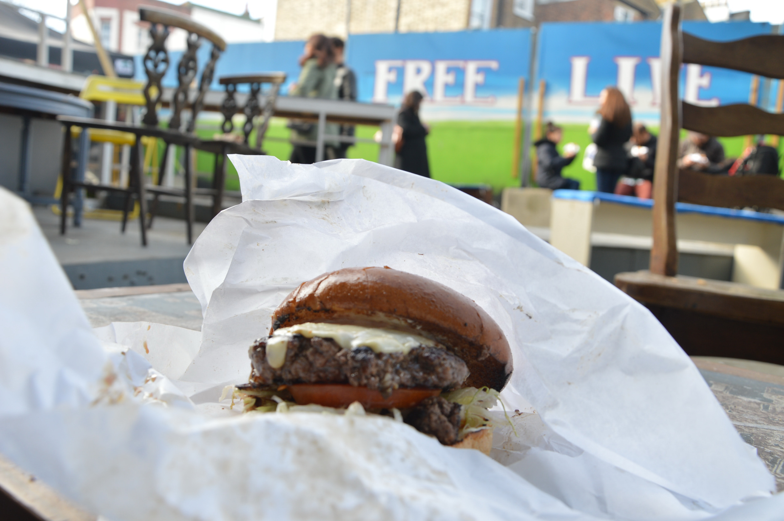 Food markets are really common here. They are great alternatives to restaurants and they habe cheaper me us. This one is called Acklam Village. I « was lurking around » the Cheeky burger stand for a long time. The burgers are homemade from the bun to the filling. :-). They are excellent! I asked for medium doneness and that’s what I had. A bit spicy but nothing that could anesthetize my sense of taste. The cheese was perfectly melted, I had cheese nets in every bite … In short, the cheese burger was excellent.