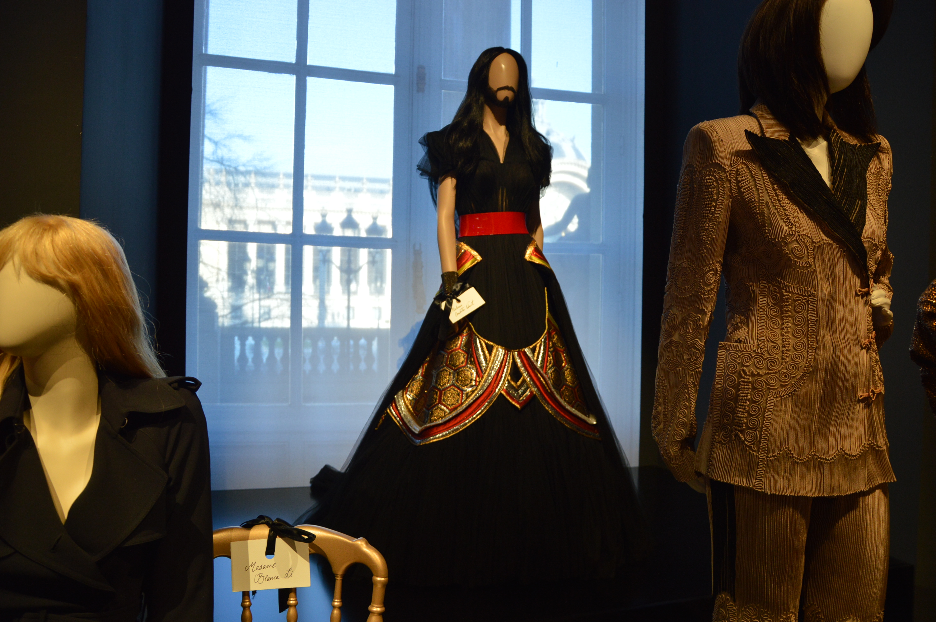 Les salles suivantes reprennent les différentes périodes stylistiques du créateur ainsi que les pieces qu’il a créées pour différentes personnalités: David Bowie, Catherine Deneuve plus récemment Conchita Wurst. La scénographie est vraiment top. Vous serez tour à tour dans les gradins du défilé, puis sur le podium! Arrivés en haut des marches pensez à prendre la pause ;-). Sur le chemin, pensez à vous arrêter devant le miroir et prenez le temps d’écouter le message.;-)… Il vous faut y aller. Tout dire serait gâcher la surprise. 🙂