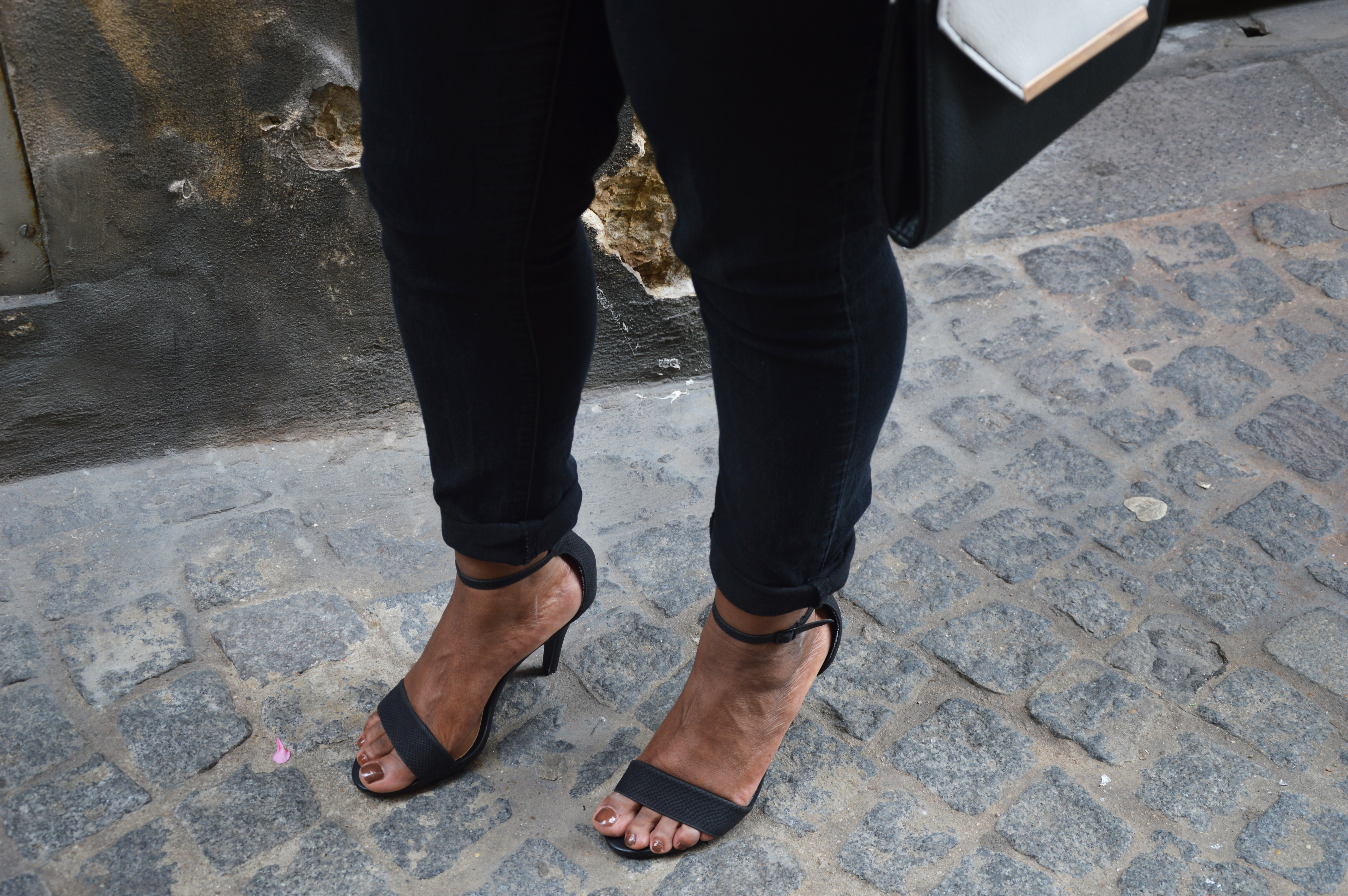 Cette pochette est comme j’aime en forme d’enveloppe. Je l’ai trouvé chez Primark l’année dernière je crois. Je suis une adepte du color bloc et des formes géométriques. Les sandales finalisent une tenue finalement asez romantique quand j’y pense. Elles sont géniales. Les talons ne sont pas trop hauts. La bande à l’avant retient mon pied sans le saucissoner pour autant.
