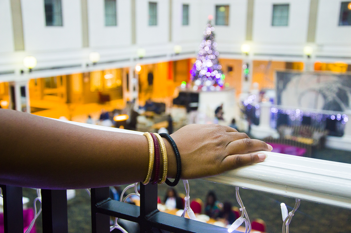 Côté accesoires, j’ai craqué pour ces escarpins bordeaux. J’adore le liseret doré en haut du talon. C’est un détail discret mais qui donne tout son charme à cette paire de talons. La pochette a une texture peau de croco et des bords doré. J’ai finalisé le look avec des bracelets doré, noire et bordeaux qui donnent un peu de couleurs et une paire de boucles d’oreille au style orientale.