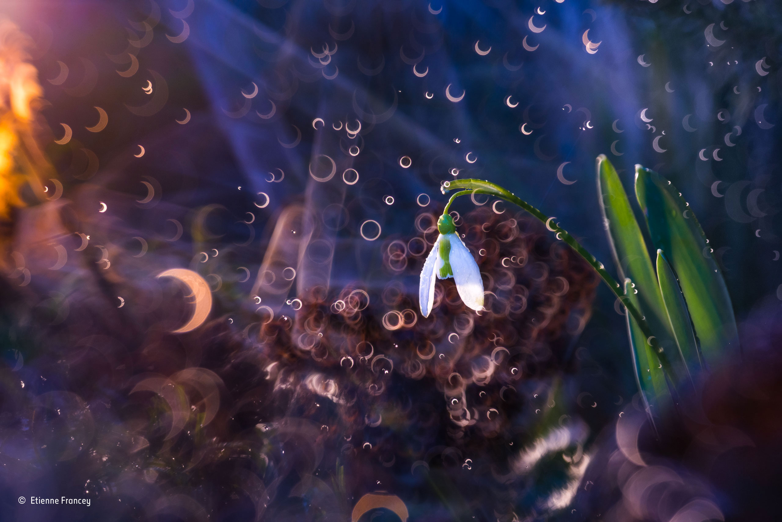 Winter Magic par Etienne Francey. La photo a un côté féérique avec ses nombres lunes. La photo a été prise alors qu’il neigeait. Pour obtenir cet effet, le photographe a aspergé de l’eau sur la plante.