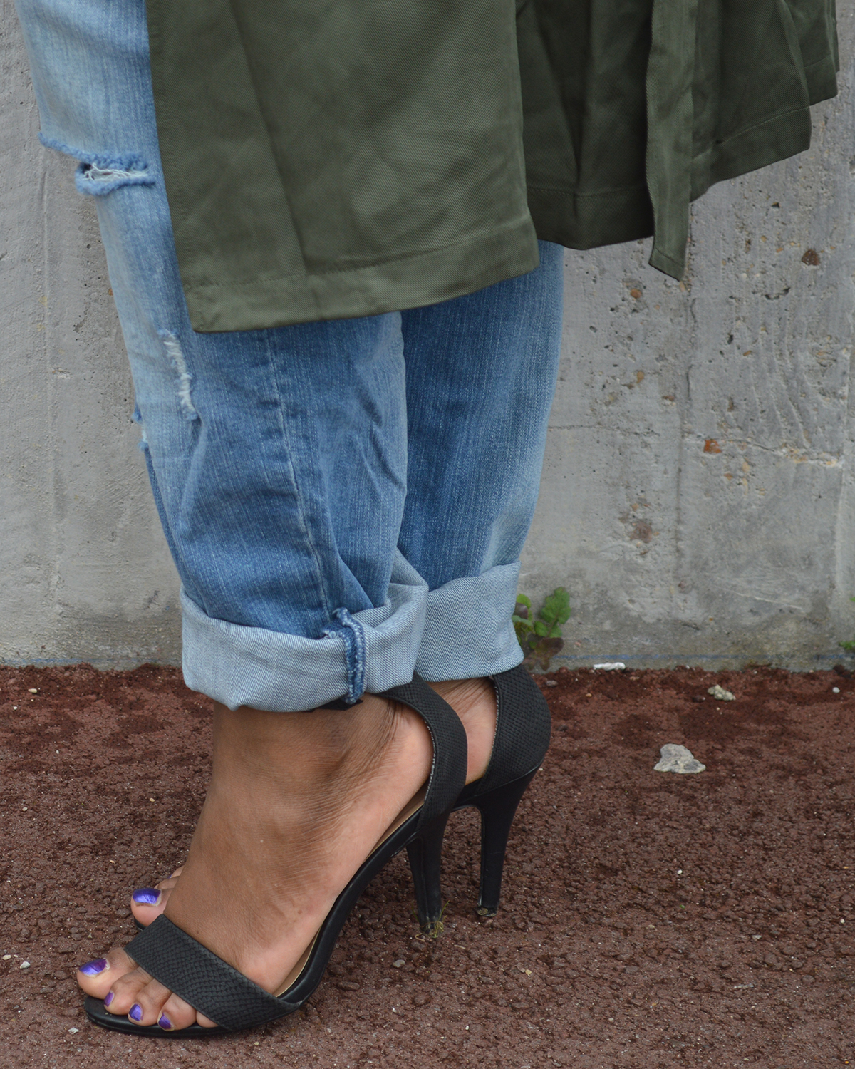 Mon look/ My outfit: Trench coat – Promod (en magasin), Body marinière/ Sleeveless Plunge Neck Body In Stripe – Asos (ici), Jean Girlfriend – H&M+ (ici), Sandales à talon/ High heels sandals – New Look (old), Sac type/ ASOS Suede Cross Stitch Duffle Bag – Asos (ici), Boucles d’oreille / earrings – H&M (en magasin)