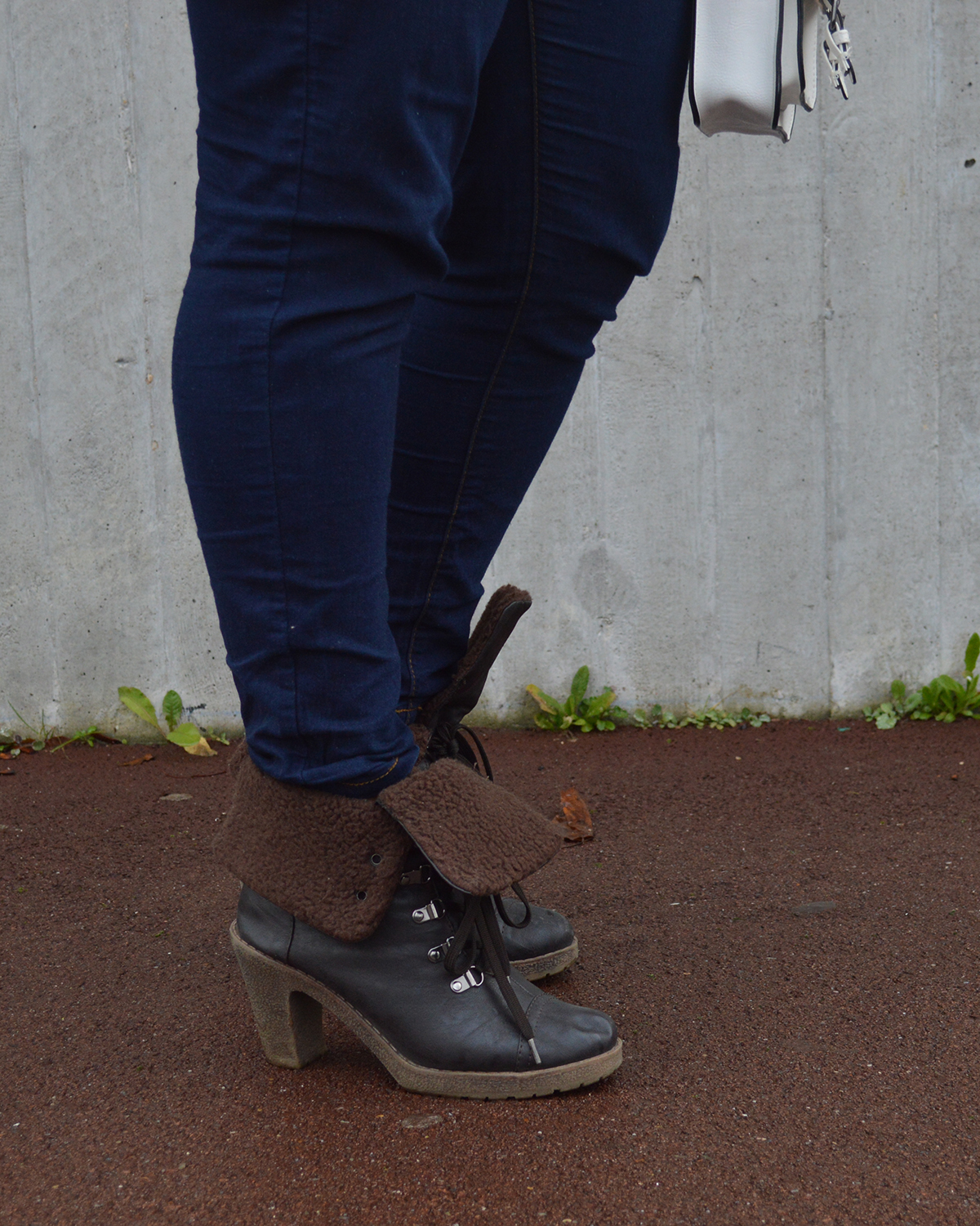 Ma tenue: Manteau Caban beige/ Coat- H&M (ancienne collection), Pull « Christmas Jumper » – H&M (ancienne collection), Jean slim brut/ Denim – Primark, Bottines / Boots – André (ancienne collection), Sac écolier / Satchel – Primark.