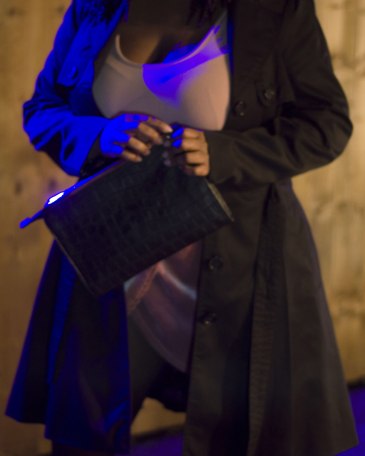 En. Well, I did not see myself wearing pink so for the rest of the outfit I chose to wear my black peep toe boots from Zara, a Primark clutch and my H & M trench coat of the same color.
