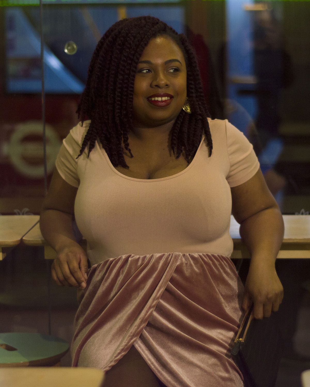 Je suis de retour avec du velours. Je ne porte pas une robe mais un body de chez Forever 21 et une jupe Missguided. Honnêtement, je suis mi figue mi raisin en ce qui concerne la jupe. J’aime la longueur, la couleur, l’effet drappé et la forme porte-feuille. Par contre, l’élastique qui fait office de ceinture n’est pas trop solide. J’ai souvent du la remettre en place pour avoir un effet « ourlet » au niveau de la taille.