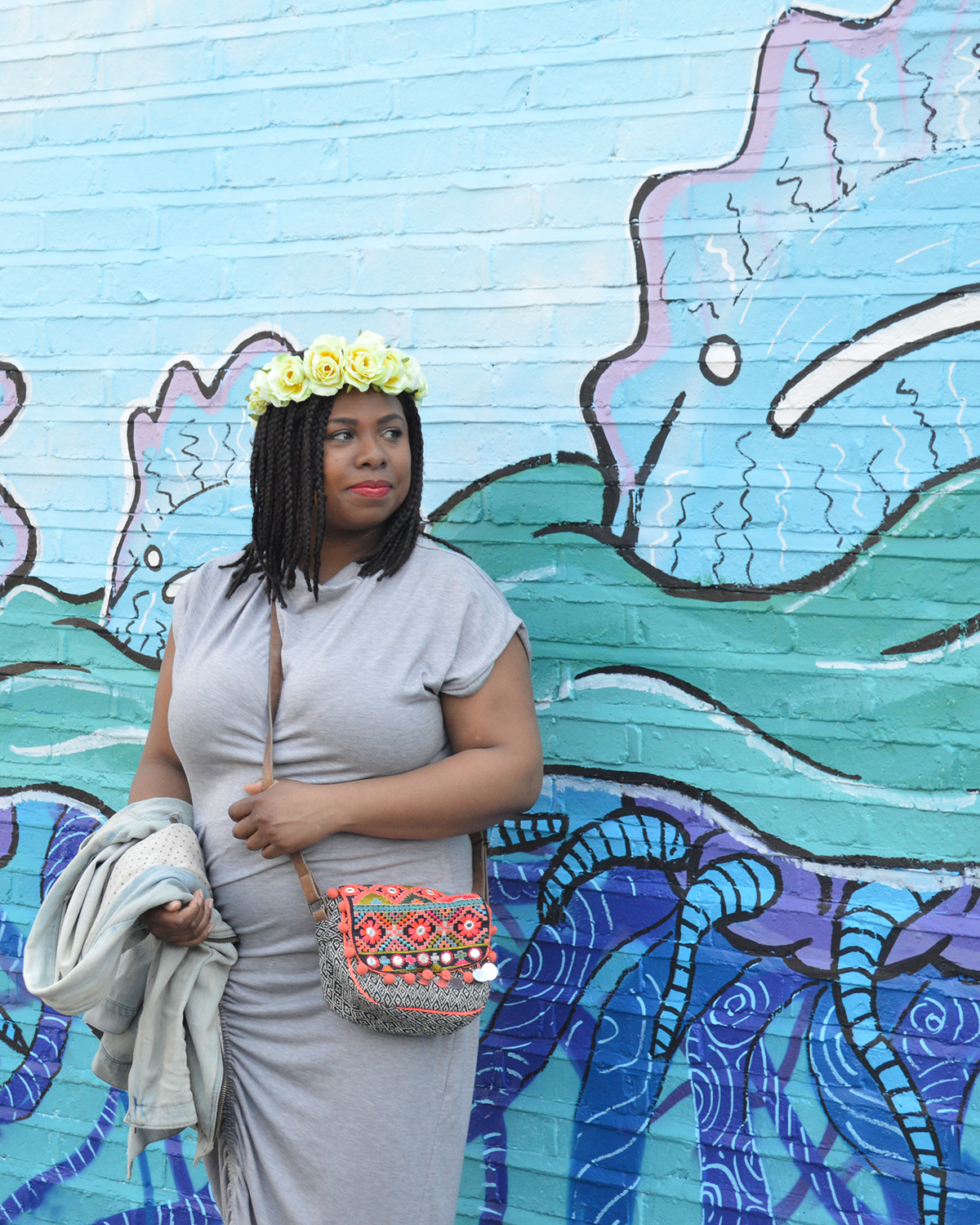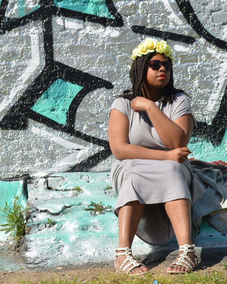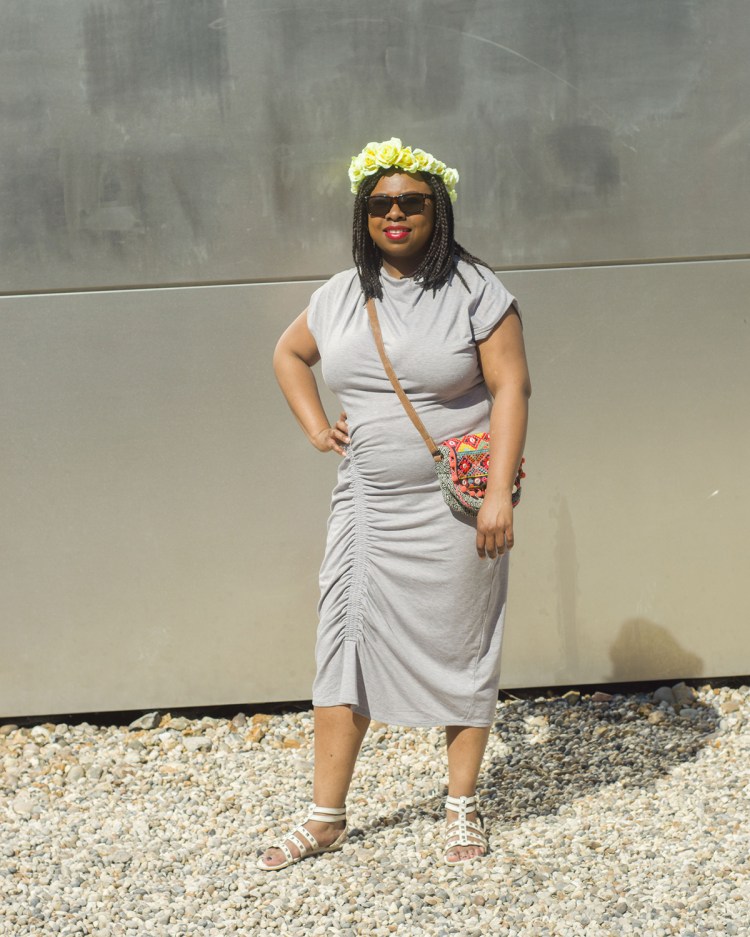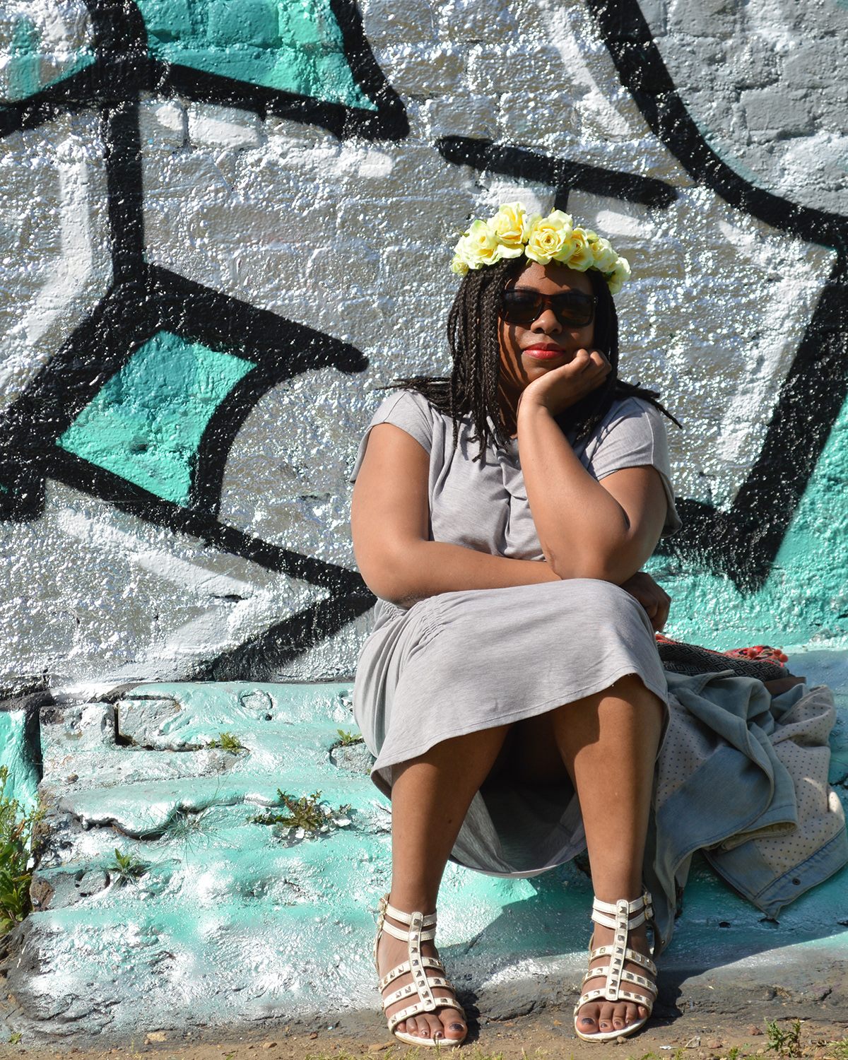 La robe que vous voyez dans cette série de photos vient de chez Topshop ici. La marque ne fait pas beaucoup de grandes tailles mais certains modèles vont jusqu’au 46. La coupe est originale voire sophistiquée mais le tissus rappelle le sport wear. Elle est facile à porter. J’ai acquis la veste en jean lors d’un vide dressing. Je l’ai repèré sur le stand de Dani. C’est aussi mon tout premier achat GAP. J’ai acheté les spartiates dans un Mango outlet. Il faisait si beau ce jour là que je n’ai pas eu peur de sortir les doigts de pied ahah! Le sac vient de chez Primark. Avec les beaux jours, je le ressors avec joie. La saison des festivals arrivent à grands pas alors j’ai démarré une collection de couronnes de fleurs. Celle que je porte est un achat Forever 21 ici. Au final, le look est plutôt relax. Je me vois bien porter cette tenue pour un festival ou aller me balader.