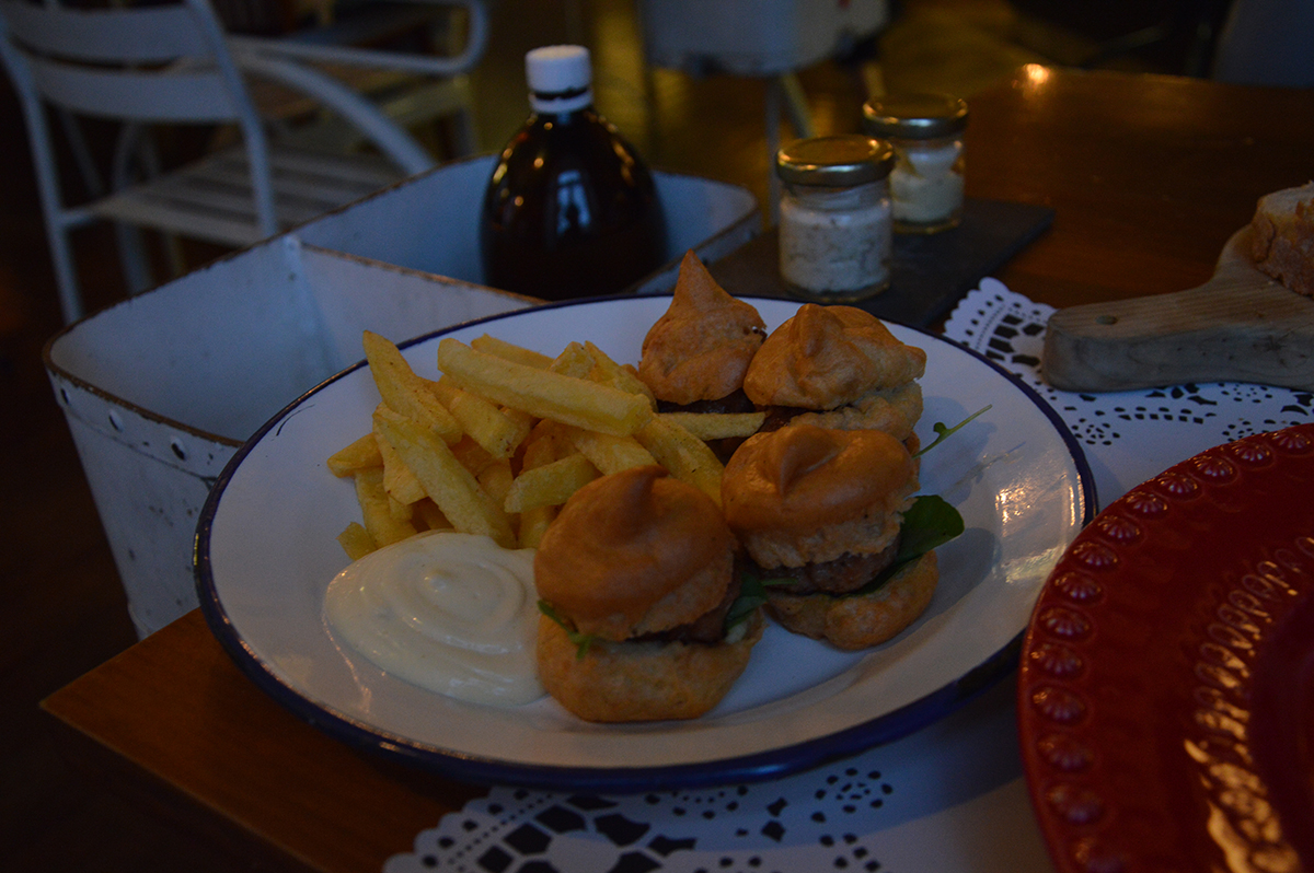 Lisbonne, les restos. J’ai eu de gros coup de coeur pour trois adresses durant mon séjour: le Pois café, la Pharmacia et le resto Chef Nino. Le Pois Café n’est pas loin de la Cathédrale Se dans le quartier de l’ Alfama. Je n’ai pas pu faire de photos. Je n’avais plus de batteries. Mais, le lieu se trouve dans une ancien bâtisse en pierre. La déco s’inspire de l’Asie. L’endroit est cosi. On a envie d’y rester. Ils ont une carte sympa  avec un plat du jour, des salades et des sandwich frais. Dans le meme style, je te conseille le restaurant Chef Nino dans le LX Factory. J’ai été attiré par une jolie terasse vide à ce moment là. De plus, il propose un menu entree, plat, boisson a 8 euros! Je n’ai pas été déçue. En entrée, une soupe hyper bonne et sans doute faite maison. En plat de résistence, j’ai opté pour un burger. Wouahouh! Il était excellent. La steack haché était parfaitement assaisonné. Le bun brioché n’était pas sec. J’ai remarqué deux choses sur les tables portugaises: les frites sont souvent remplacées par des chips et la soupe est un big deal là bas. Ils en proposent au Mac Do.  La Pharmacia est un restaurant très connu à Lisbonne. La carte y est plus chère que la moyenne. Mais, les plats sont goûtus. Et tu payes la qualité de la cuisine et le cadre. Le restaurant se trouve sur le miradouro de Santa Catarina. Il offre une vue époustouflante sur Lisbonne.  La décoration rappelle celle d’une ancienne pharmacie d’ou le nom. Le restaurant est en fait juxtaposé à un centre hospitalier. Il y a une carte de cocktail originale. Toutes les boissons ont un nom de médicaments. Je me suis laissée tenter par le cocktail ‘Paracetamol’. Si vous avez un budget limité, je vous conseille de venir y boire un verre.  J’ai évidemment goûté au Pasteis de Belém. Il faut tester sauf si vous avez une allergie aux oeufs ou aux gluten par example. Elles se rapprochent de tartelettes de flan. J’ai trouvé cette patisserie très bonne surtout le jour d’après. Je suis tombée par hasard sur le Time Out market, un marché couvert. Il y en a pour tous les goûts: cuisine portugaise, japonaise,  nord americaine, etc… Il m’a beaucoup rappelé le marché San Miguel à Madrid (ici). Les stands sont sur les côtés. Les tables sont répartis au centre du marché sur toute la longueur. Je trouve qu’il manque un peu d’authenticité.