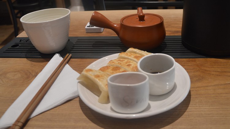 Les gyozas sont arrivés chauds. Ils avaient l’air faits maison. Ils n’étaient pas salés du tout mais il y avait une très bon équilibre avec la sauce soja.