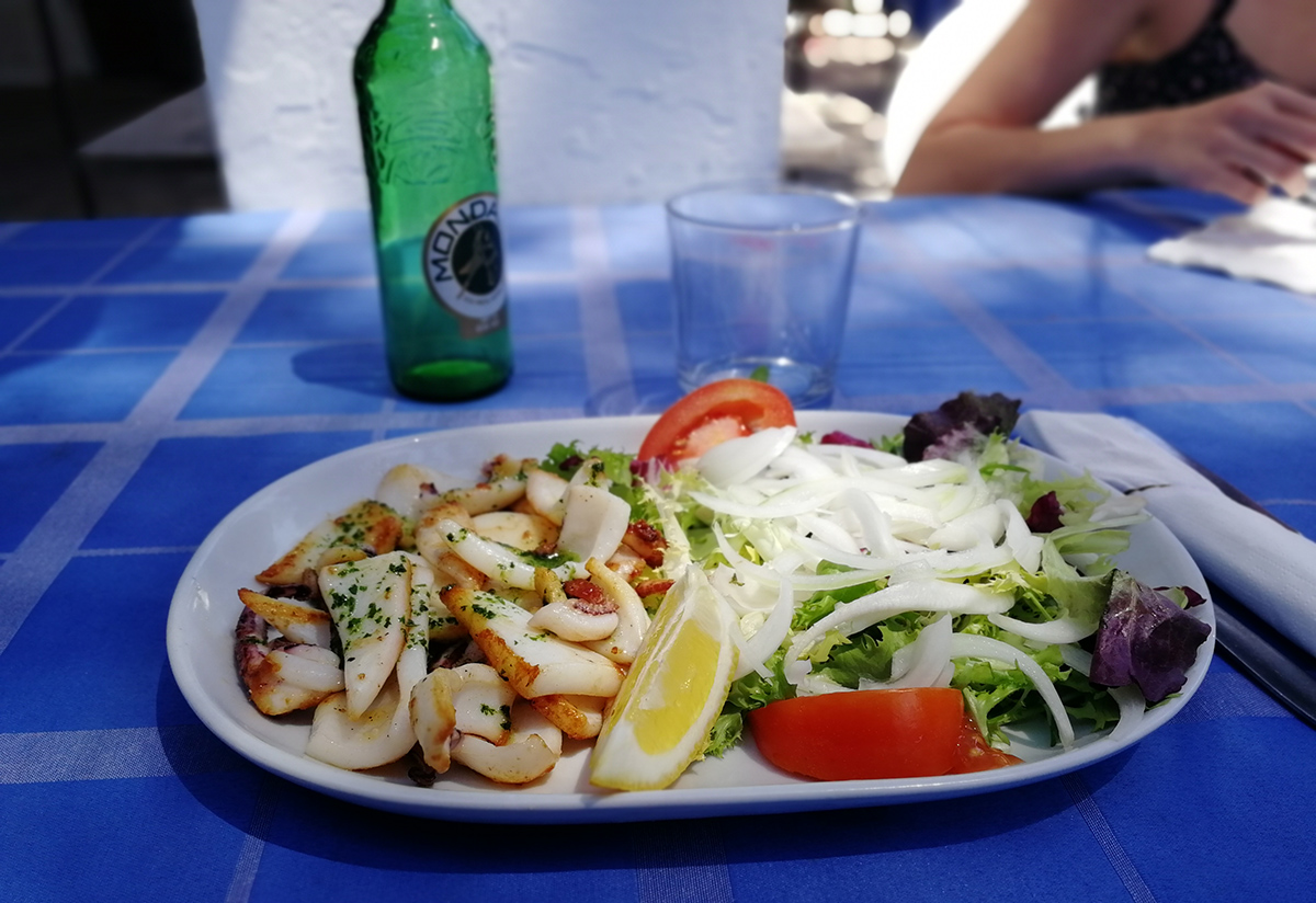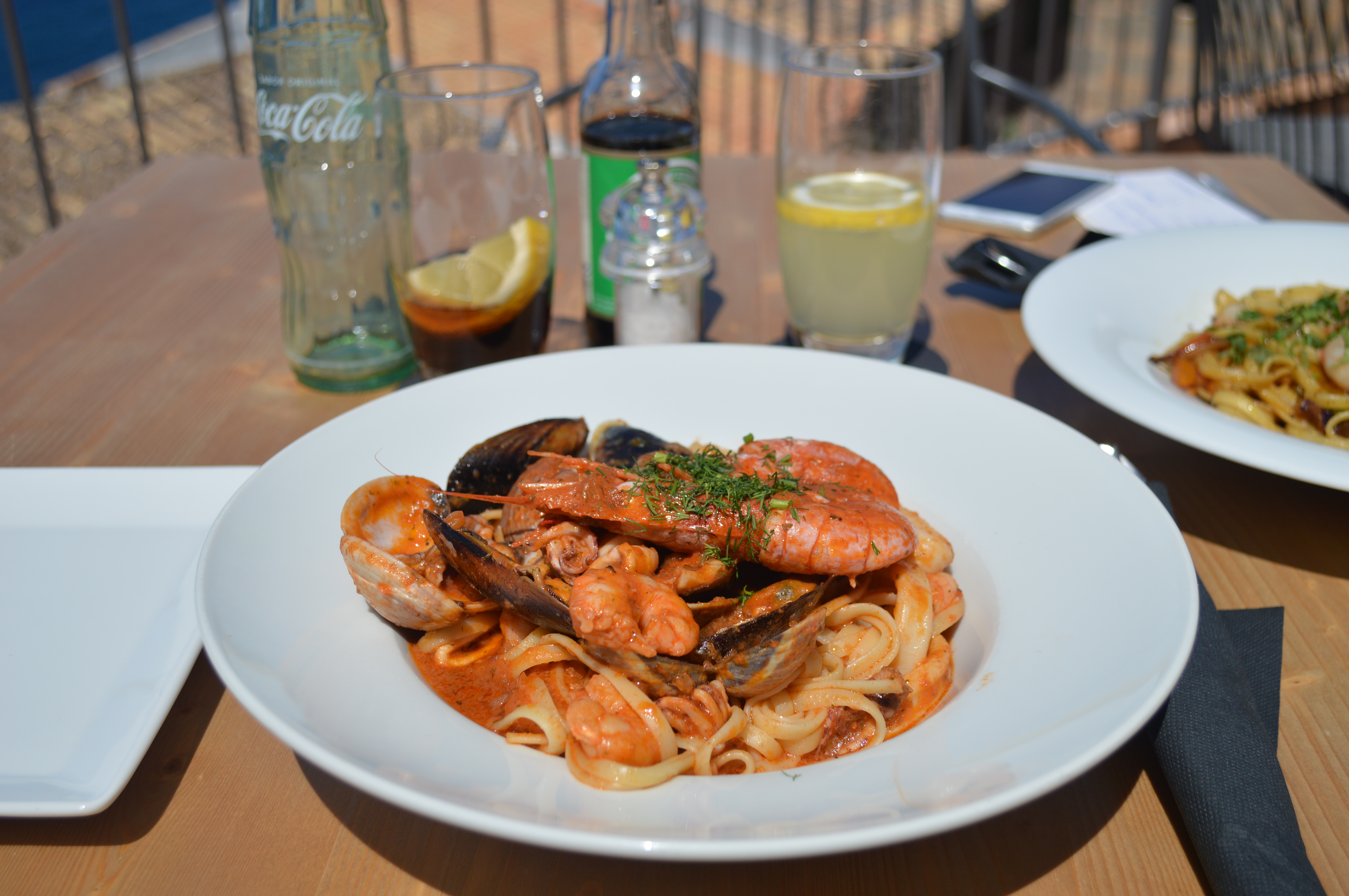 Restaurant i Cafe Bellavista – Carrer Comte de Sallent, 15, 07191 Banyalbufar, Illes Balears, Spain – Wow mon meilleur plat de pâtes aux fruits de mer! L’assiette était blindée de calamars, de moules, de crevettes et coquillages. La rapport qualité/prix est indiscutable. La vue de la terrasse est géniale: du bleu à des kilomètres.