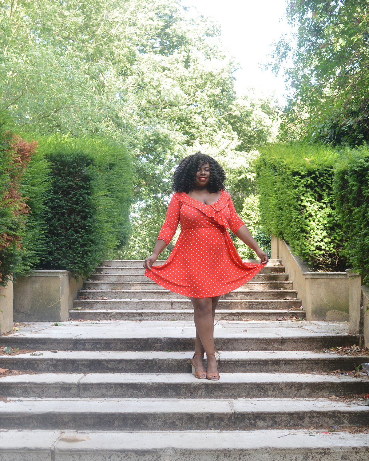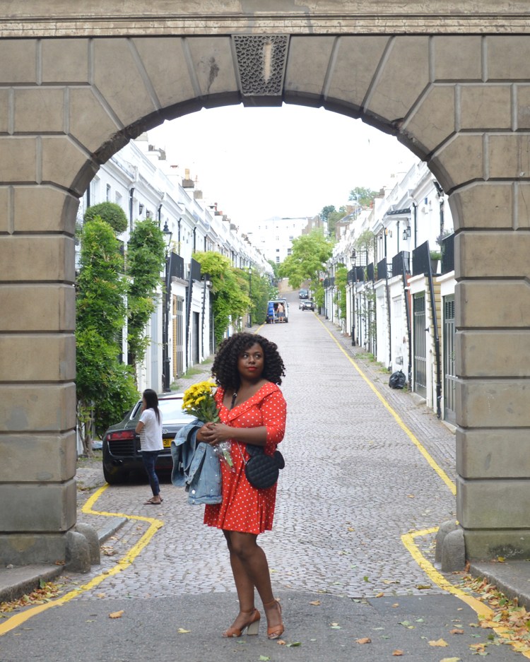 Depuis que les beaux jours se sont installés, je n’ai qu’une obsession: trouver des robes faciles à porter me permettant d’avoir les jambes à l’air. J’avais la vision d’une robe à pois depuis longtemps. J’ai finis par trouver mon bonheur chez Asos. Je t’emmène en ballade dans l’ouest de Londres. Nous sommes allées au Holland park mews une impasse connue, puis à Holland park.