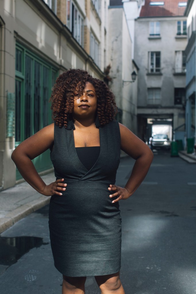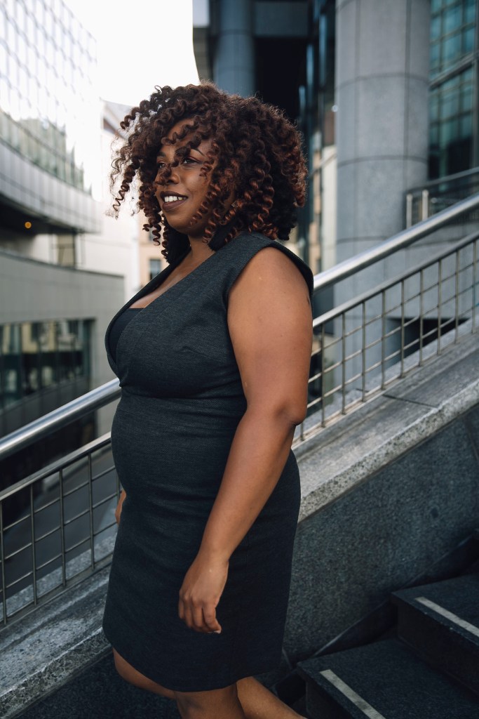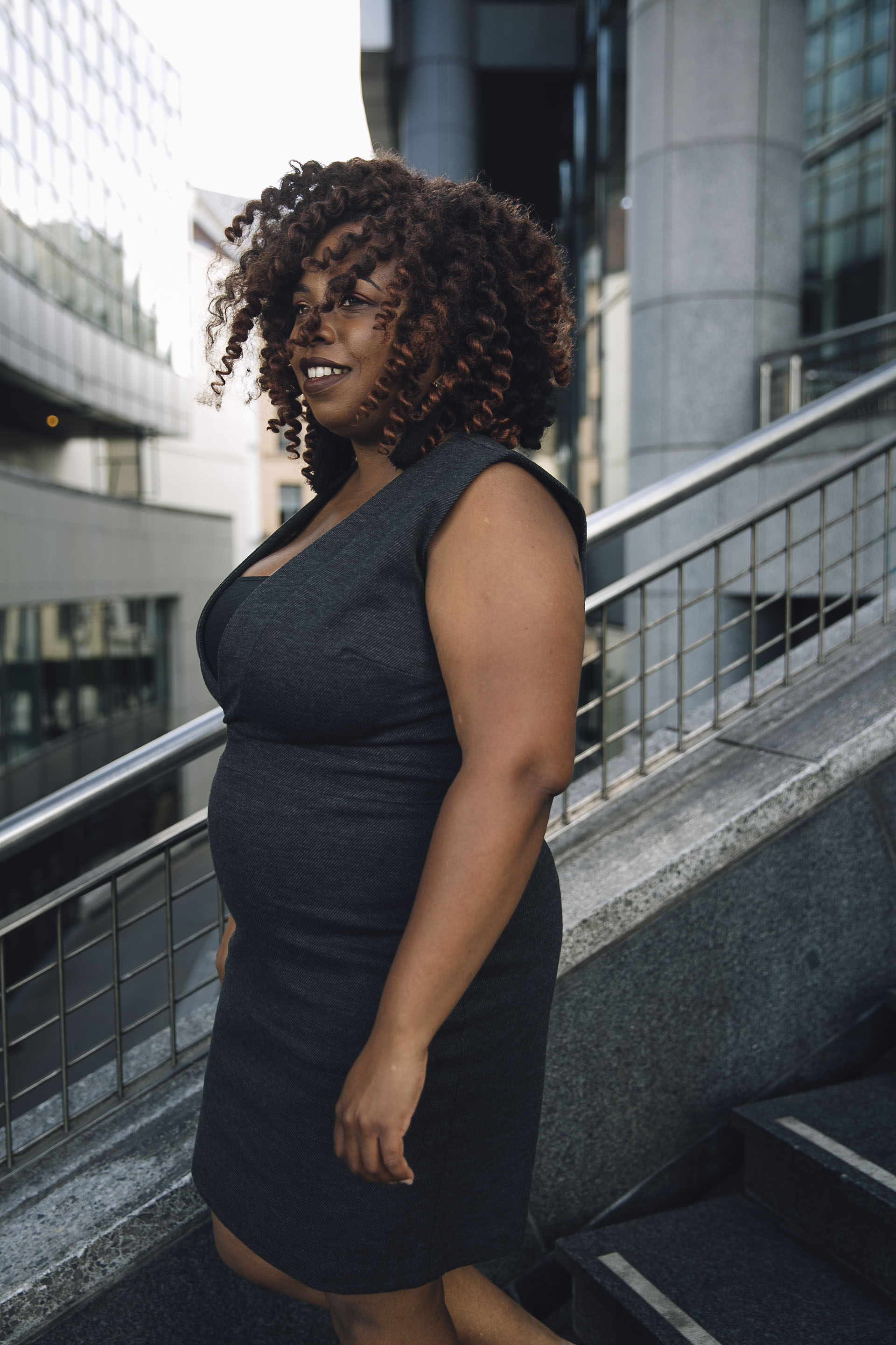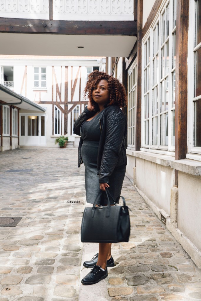 Hello! Aujourd’hui, je vous présente un look que je porte régulièrement pour aller au boulot. Je travaille dans le digital. Le code vestimentaire est assez décontracté. Certains de mes clients viennent de secteurs d’activité plutôt rigides. Du coup, je m’adapte en portant ce genre de robes. J’aime beaucoup la mettre. Je la portais un bandeau noir ce jour là mais en hiver je mets plutôt un sous pull avec un col roulé.