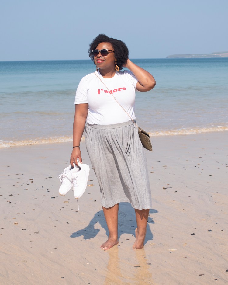 Hello! Aujourd’hui, je t’emmène en balade sur une plage britannique. Durant mes vacances de Pâques, j’ai fait un road trip en Angleterre qui m’a amené jusqu’à cette plage de la ville de St Ives qui se trouve dans la région du Dorset dans le sud du pays. Cette plage s’appelle Carbis Bay. L’eau était magnifique mais a cette période de l’année elle est probablement glacée. Ça n’arrête pas les anglais pourtant!
