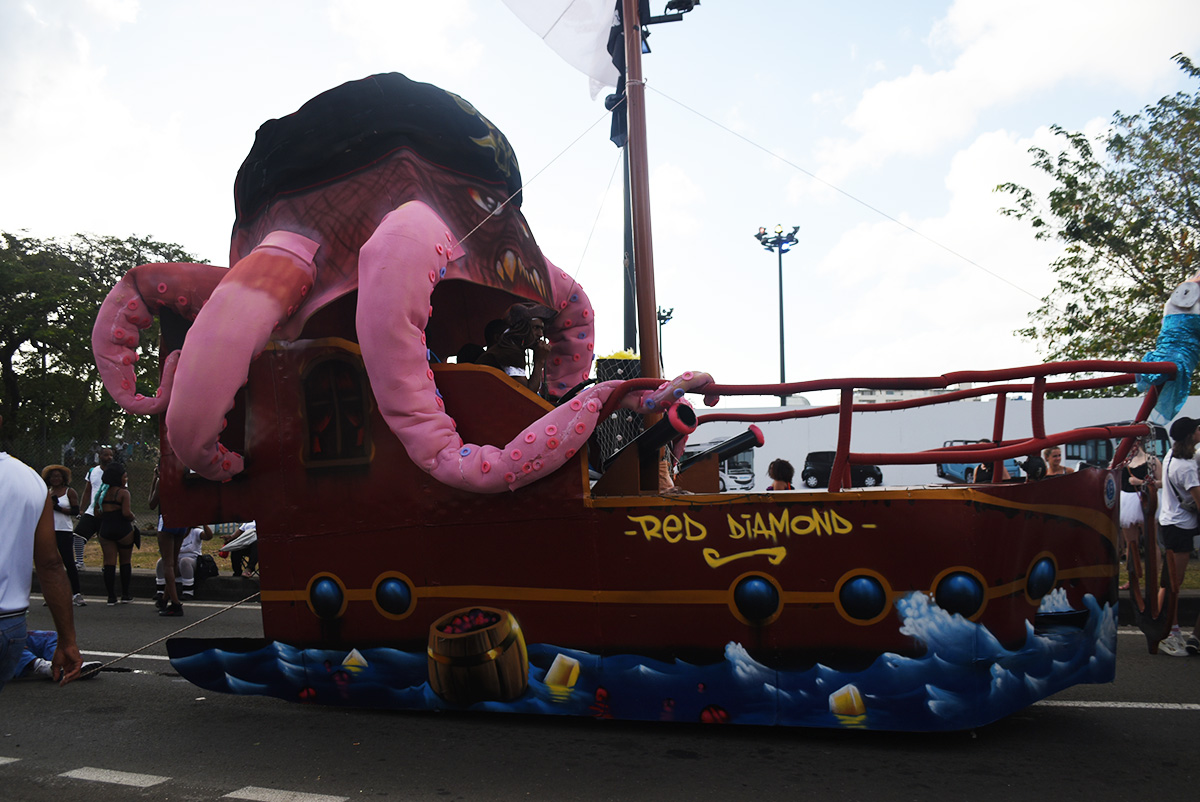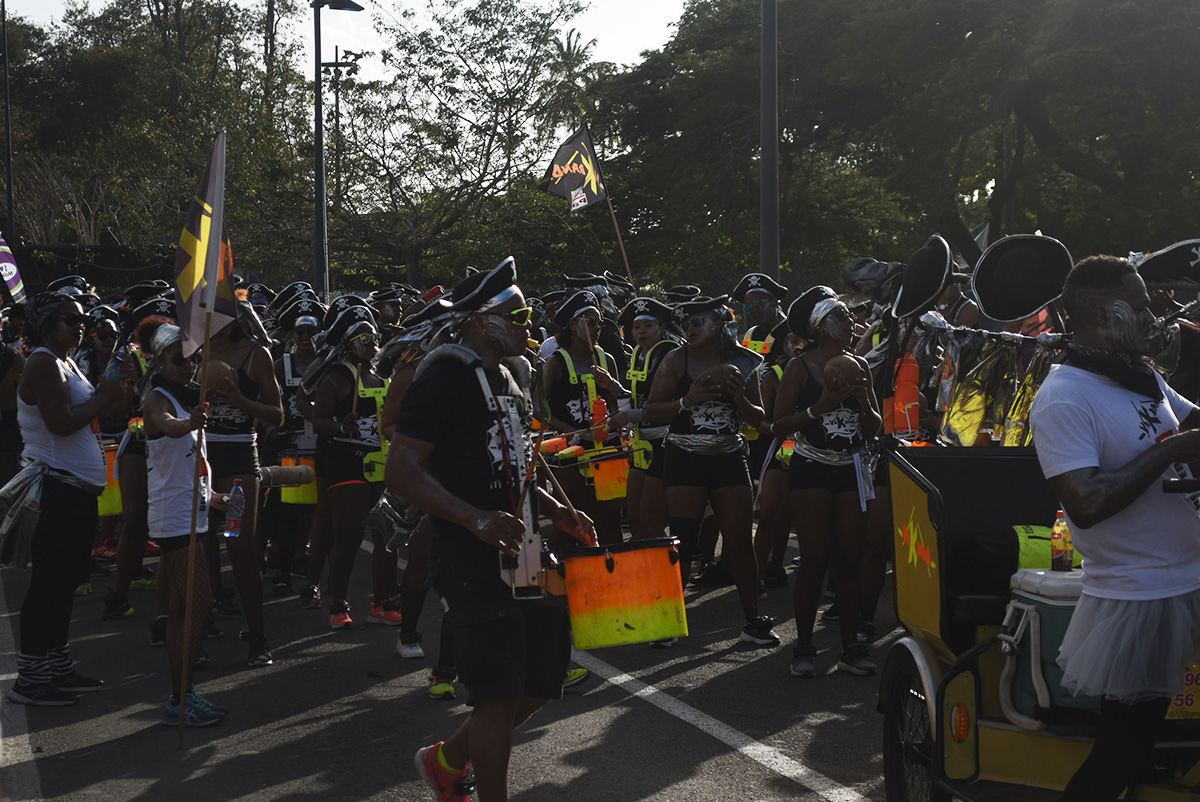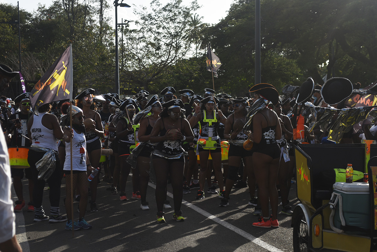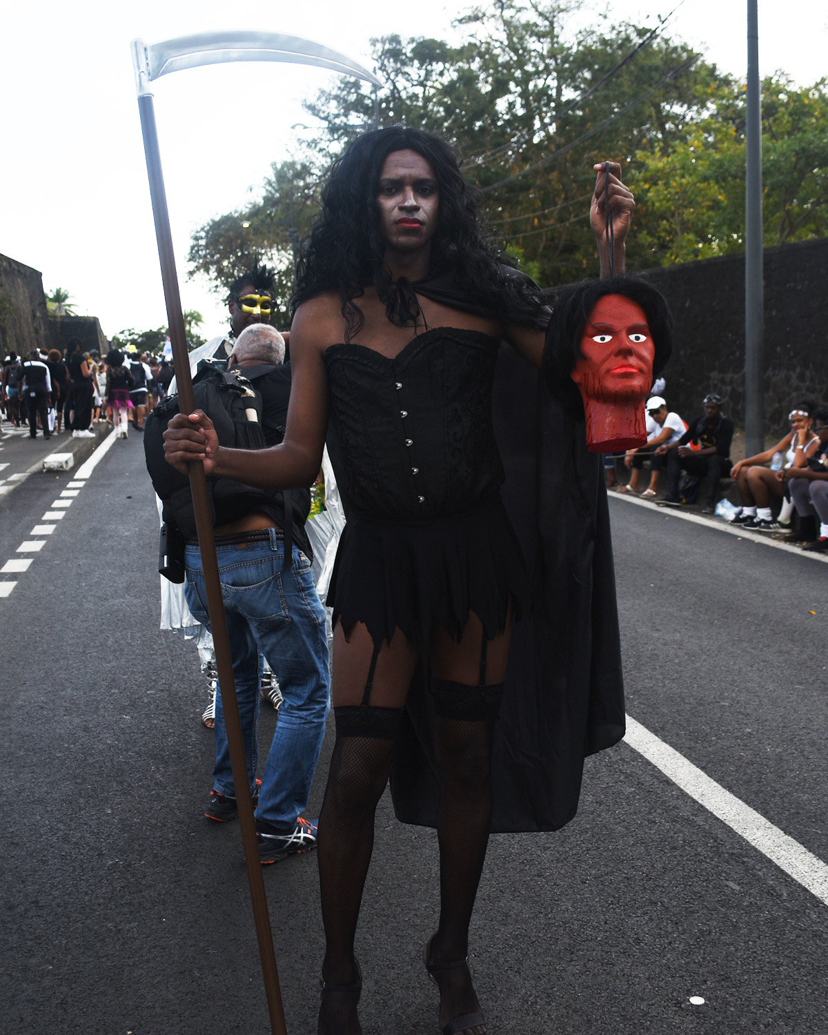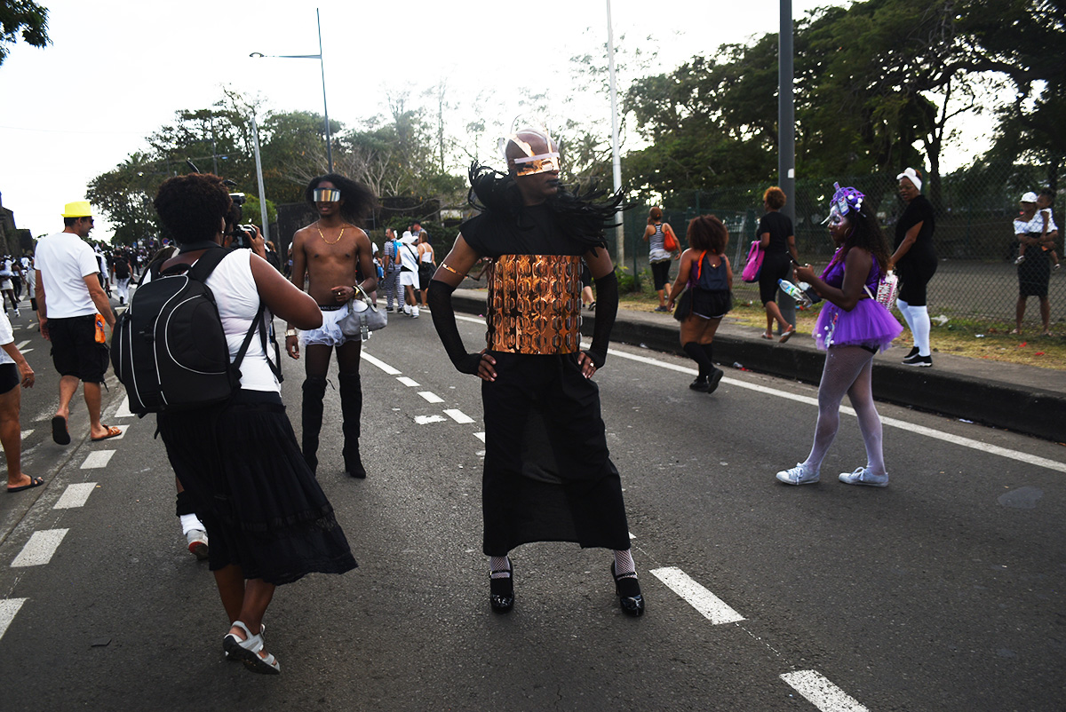 Le mardi gras est le jour le plus suivis. Attention, il y a beaucoup de monde dans les rues de Fort de France Dans la tradition chrétienne, il précède le début du carême (40 jours de jeûne avant Pâques). Il est possible de rejoindre des groupes de percussions pour un « vidé pyjama ». On a suivi un groupe qui s’appellait « Pom Pom C Chann ». Puis, nous sommes allées du côté du Lamentin, on avons dansé jusqu’au matin. A la fin du parcours, la ville nous a offert un plat typique à base morue, de banane plantain et d’ignames » Tinin lanmori ». Franchement, c’est arrivé à point nommé. Le soir, nous sommes partis dansé du côté du François. Oui, en plus des vidés le jour, il y a les soirées le soir et les vidées pyjama en mode after… c’est intense. Ce jour-là, MissNatïaa m’a fait suive la tradition des neg’ gwo siwo. Les Nèg Gow Siwo étaient des esclaves affranchis qui mettaient du sirop de batterie pour disparaître dans la nuit. Aujourd’hui, les carnavaliers reproduisent ce déguisement pour faire peur à la folie en menaçant de les salir avec le sirop qui est assez épais. Ça m’a bien fait rire de voir les gens s’écarter d’un métre en me voyant!