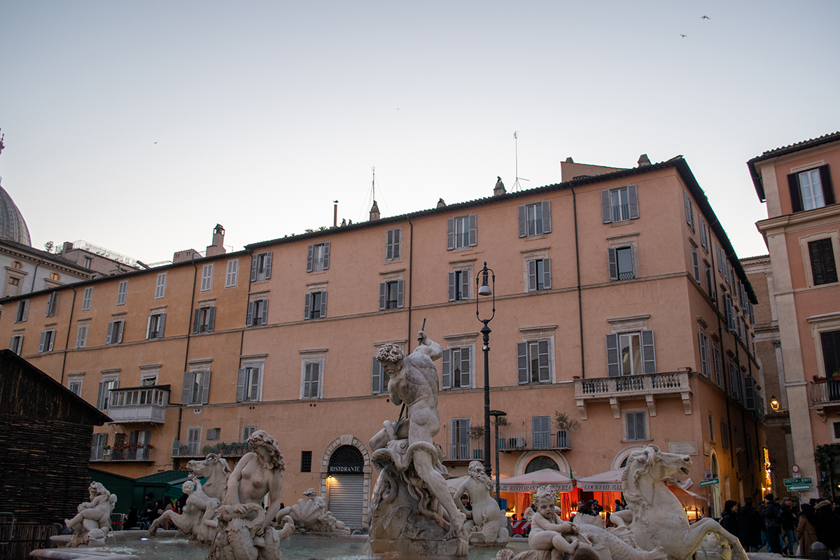 Piazza Navona est célèbre parmi les artistes et les touristes. Il est très populaire, non seulement en raison de son aspect pittoresque, mais aussi en raison d’autres attractions telles que les fontaines, les palais, les églises, les cafés et les restaurants qui l’entourent. Il est construit sur le site du stade de Domitien. Il fut inauguré au 1er siècle après JC. Dans l’antiquité, les romains s’y rendaient pour observer les agones (compétitions sportives).