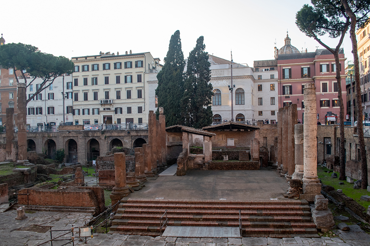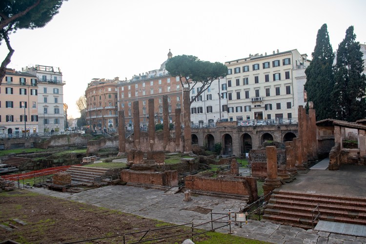 Le Largo di Torre Argentina est le lieu où César fut assassiné. En fait, César n’était plus le grand homme politique respecté dont je me rappelais. Il était détesté par les romains à la fin de son règne. Son fils Brutus complote avec ses ennemis pour le faire tuer. Et c’est Brutus qui portera le coup de grâce avec le 24ème coup de couteau.