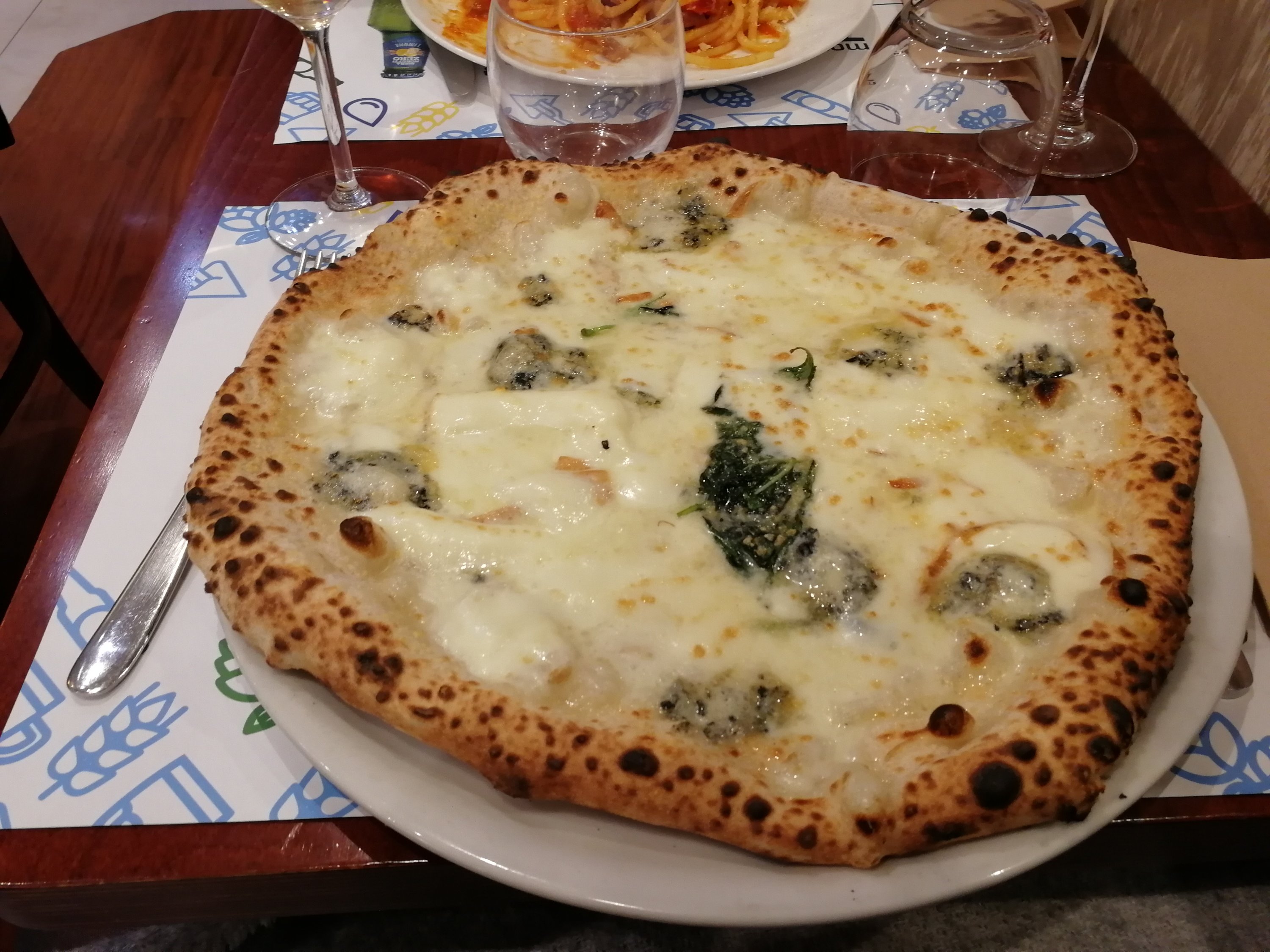 Le 220 grammi se trouvait en bas de notre Air b’n’b. C’est un restaurant de quartier. J’ai beaucoup aimé l’ ambiance familiale et je me suis régalée avec cette pizza 4 Fromage à base blanche.