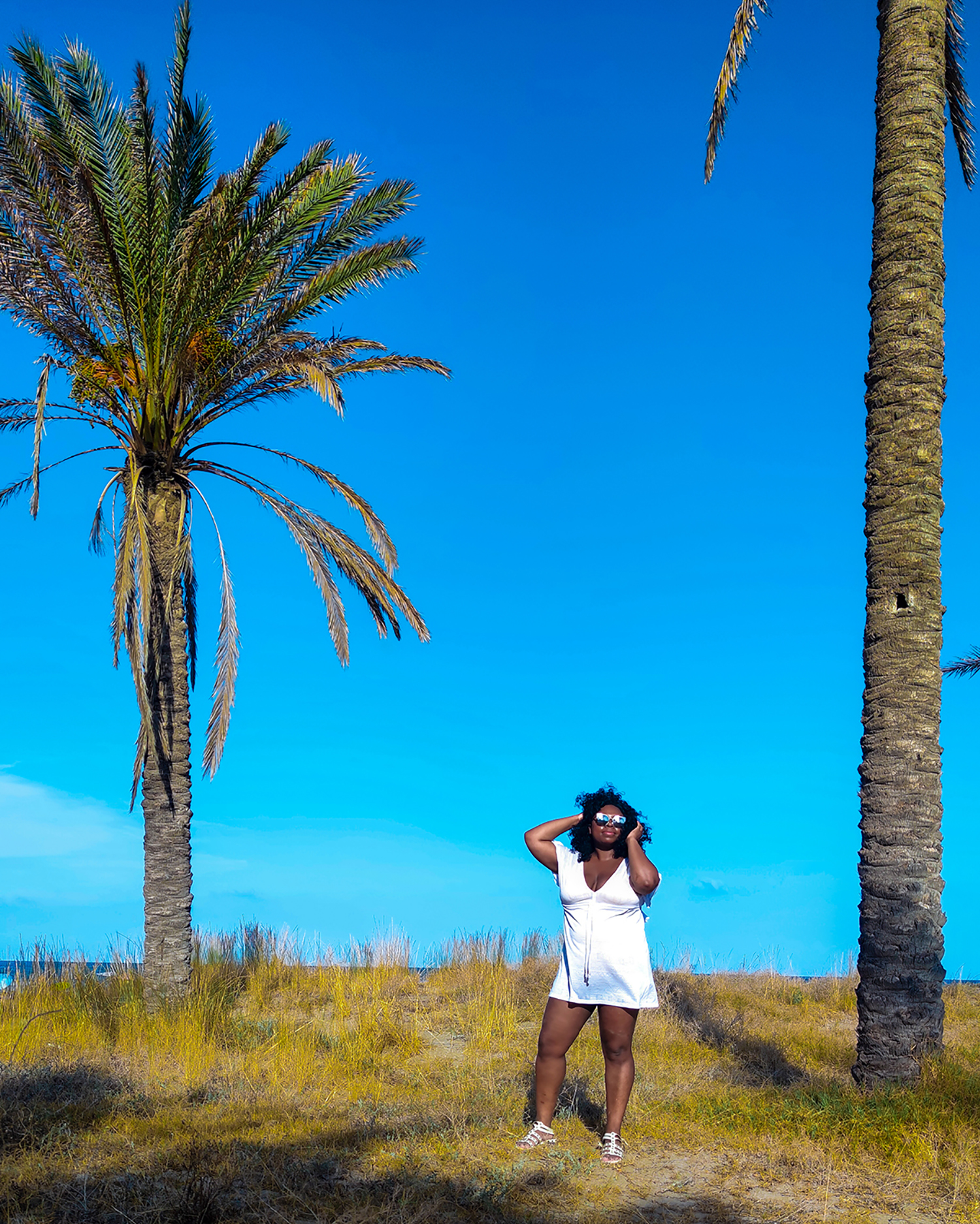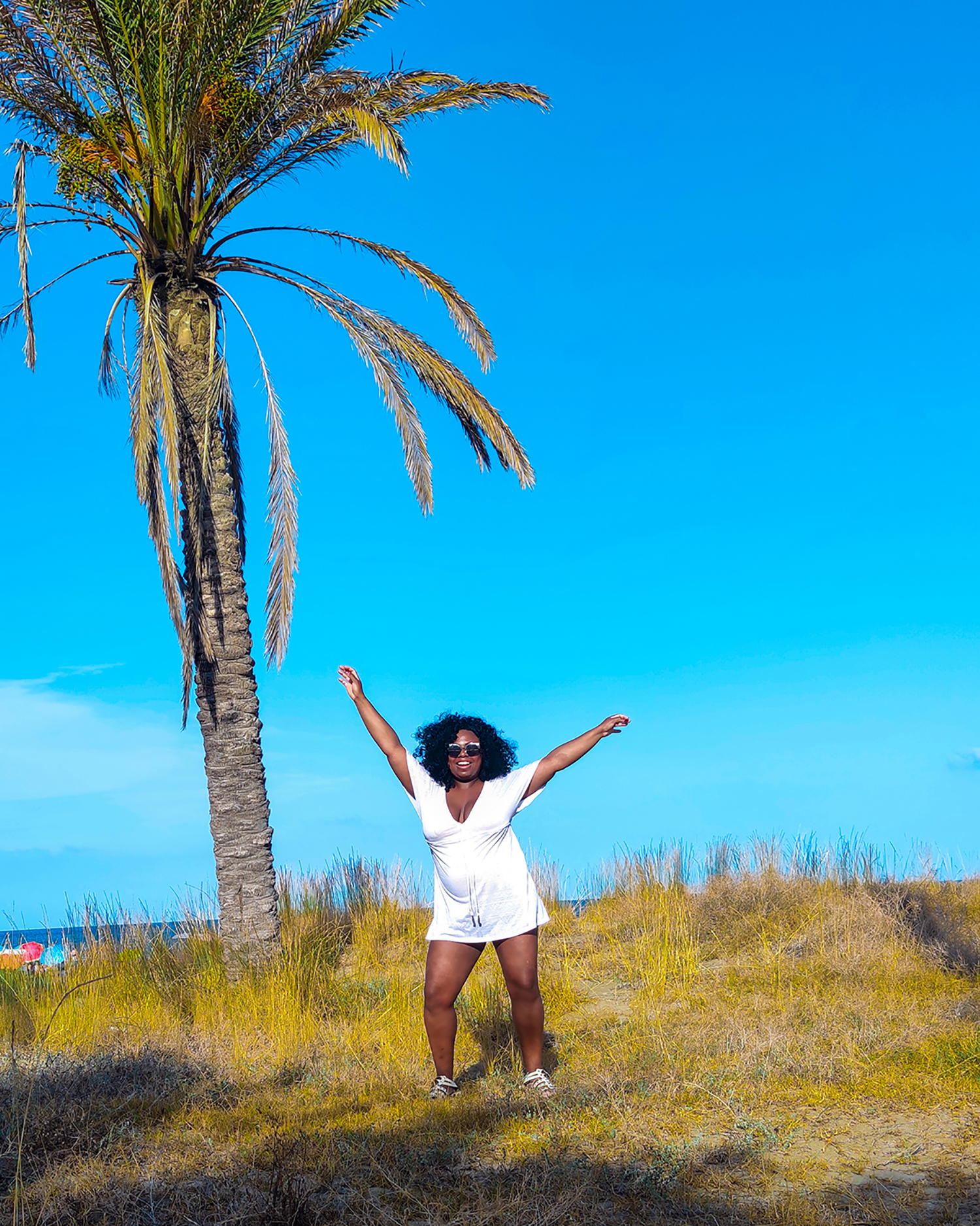 Salut! comment vas-tu? Aujourd’hui, je t’emmène à la plage! Nous allons à la plage del Pinar pour y passer une après midi détente: lire un livre sur une chaise longue, écouter une bonne playlist, prendre un bain mer.