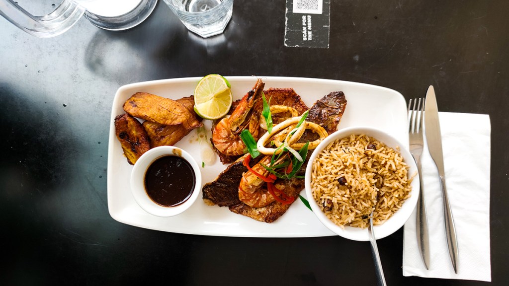 Hello, comment vas-tu aujourd’hui? Ici, nous retournons en Jamaïque plus précisement au restaurant »Cottons ». La carte comprend des plats traditionels jamaïcains. Cottons est une chaîne de restaurants. Il y a quatre restaurants à Londres: Camden, Shoreditch, Vauxhall, Notting hill.