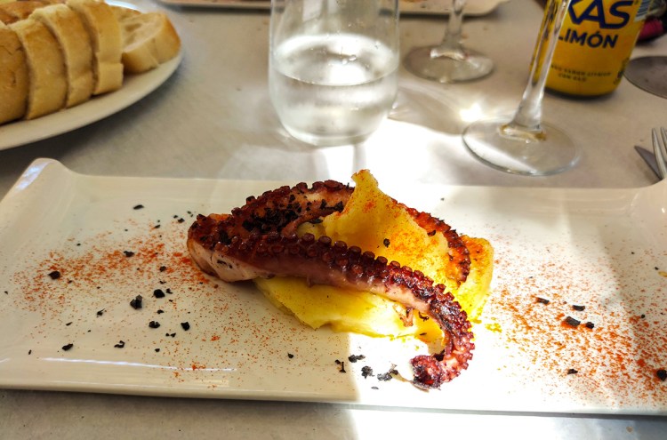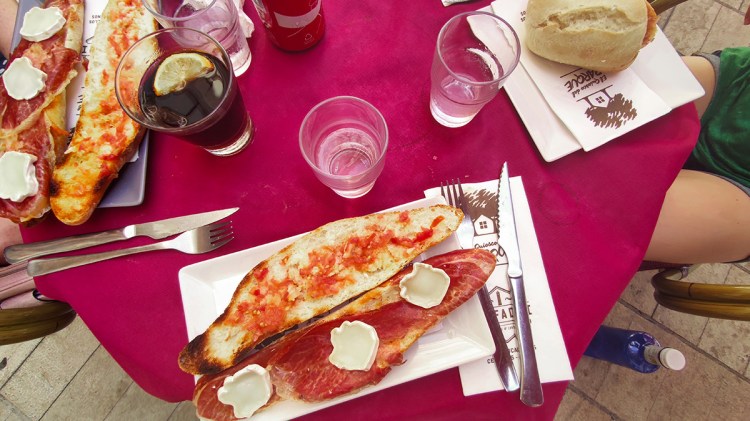 La cafetaria El Fadrí se trouve à dix secondes de la plaza mayor. Il est très bien placé. La carte comprend beaucoup de tapas. Nous avons choisis un plat à partager typique appelé « Huevos rotos« . Le plat est originaire des îles Canaries. La création des huevos rotos remontent au moins au début des années 1800, où l’écrivain américain Richard Ford a noté après avoir passé du temps en Espagne que ce plat était souvent consommé dans les familles à faible revenu. Cela est probablement dû au fait que les pommes de terre étaient – et sont toujours – un aliment peu coûteux mais copieux à manger. Le fait que le plat puisse être accompagné de pratiquement n’importe quelle viande ou fruits de mer permet également à une famille de fouiller dans le garde-manger ou le réfrigérateur pour utiliser la viande ou le poisson dont elle dispose et l’ajouter aux œufs. Il est plus souvent servi avec du jambon. J’ai ensuite choisi un bocadillo au fromage de chèvres et au jambon. C’est un sorte de baguette coupée en deux et toastée. Il y a different type de garnitures: omelettes ou viande. Un bocadillo sera une portion de baguette de 6 à 8 pouces de long, coupée en deux et remplie de saucisse chorizo espagnole, de charcuterie, de thon ou de jambon serrano. En général, les Espagnols n’empilent pas de mayonnaise, de laitue et de cornichons sur les bocadillos, mais peuvent inclure des tranches de tomate ou frotter une tomate en tranches sur le pain pour l’humidifier. Celui que j’ai mangé était un croisement avec le « pan con tomate« . Il y avait une sauce tomate étalée sur chaque face. J’ai trouvé la serveuse pas super agréable et empressée de prendre la commande quand nous étions occupées à déchiffrer la carte. Mais dans l’ensemble l’expérience est bonne.