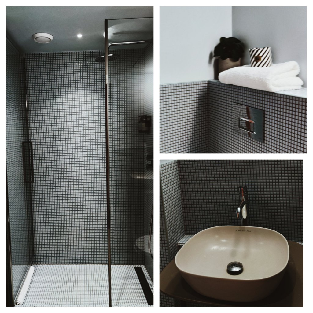 J’ai été séduite par la chambre qui peux facilement convenir pour deux personnes. Je suis fan de décoration d’intérieure de la chambre! Elle est très tendance. Le fait que ce soit un hotel qui a ouvert récemment est un avantage. Il n’y a pas d’effet d’usure. J’ai passé l’après-midi à enchainer les shooting du coup je n’ai pas pu utiliser tous les équipements. Je doute qu’il y ait des soucis majeurs. La chambre inclus donc une salle d’eau, une chambre à coucher et un cuisine/lounge. La chambre et la cuisine sont séparés par une porte coulissante. La cuisine est tout équipé avec un four, un évier, un réfrigérateur. Il y a tout le nécessaire pour préparer les repas: matériels de cuisine de base, couvert, plats… C’est nickel! La cuisine est aussi magnifique avec un style un peu rétro. Dans la chambre, il y a une dressing et aussi de quoi repasser. Il y a aussi des serviettes, de gel douche et du savon dans la salle de bain. J’aurai aimé plus d’étagères pour y poser mes produits de soins et de beauté. La seule chose que j’ai pas compris c’est le mini balcon au niveau de la baie vitrée. Il y a genre l’espace pour mettre un demi pied d’adulte. J’imagine que c’est pour les fumeurs ou pour évacuer les odeurs de cuisine mais je suis pas sûre.