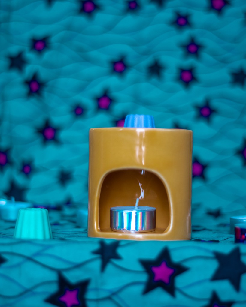 La brûleur permet de libérer le parfum enfermé dans la cire (un fondant). Il vous suffit de mettre votre cire dans le puits de votre brûleur à cire et de mettre une bougie chauffe-plat en dessous . Lorsque vous en avez assez, éteignez ou soufflez simplement la bougie chauffe-plat et laissez la cire durcir et réutiliser. Une fois que la cire commence à perdre son parfum, il vous suffit de la retirer et de la remplacer par de la cire fraîche.