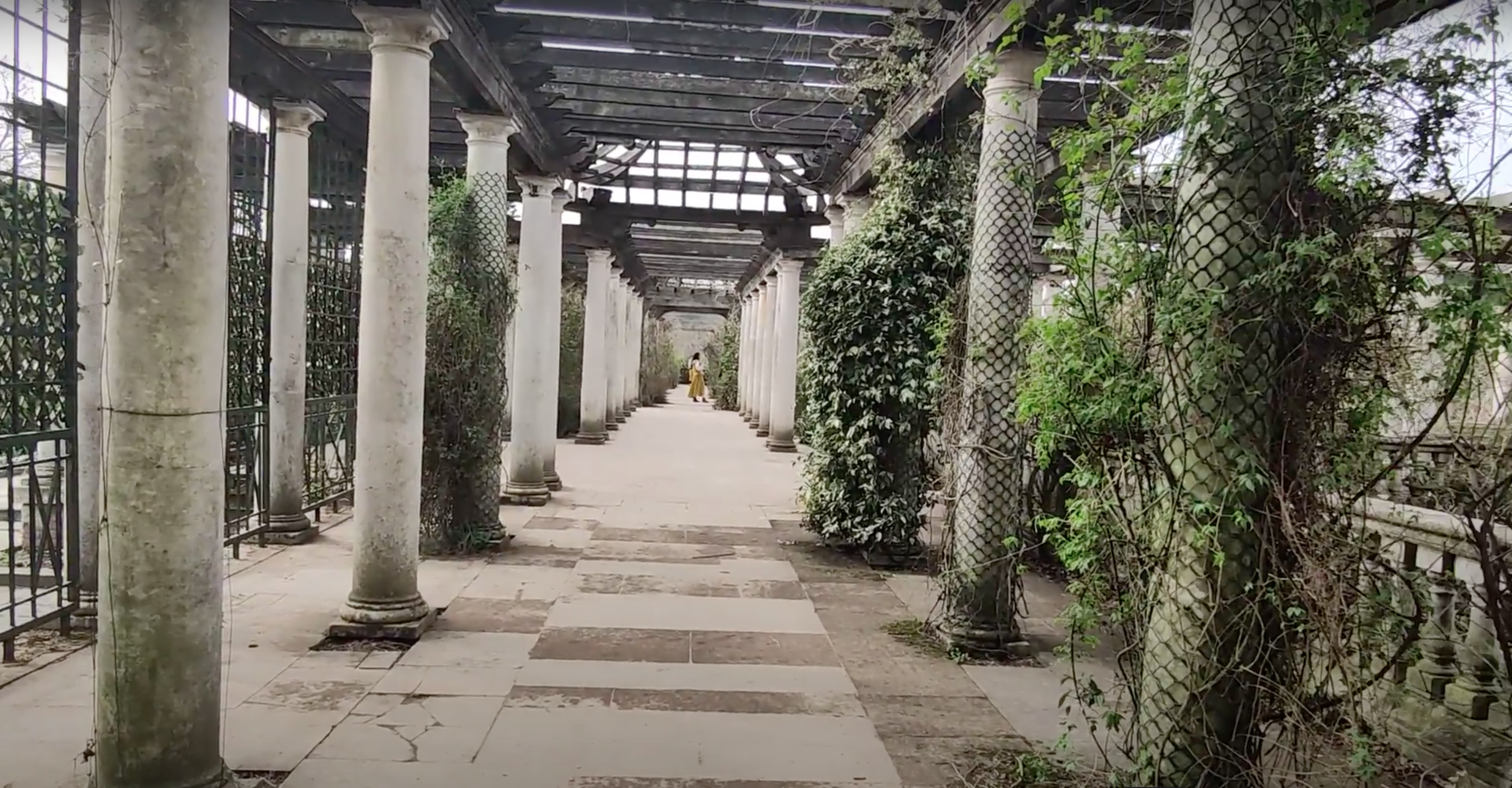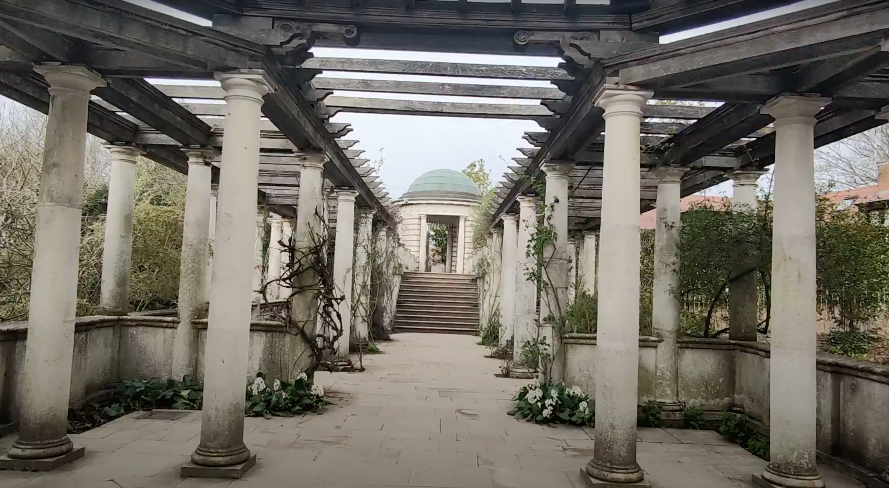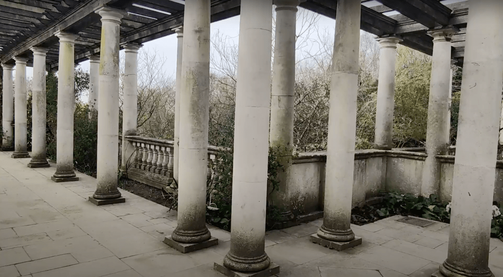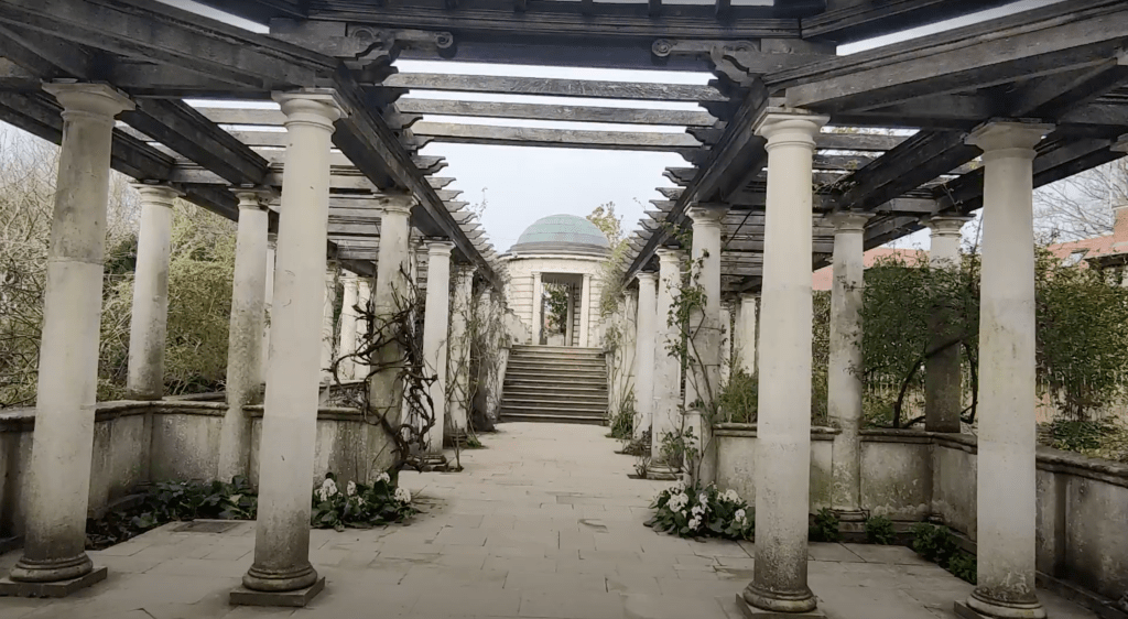 To turn this idea into reality, Lord Leverhulme enlisted the help of Thomas Mawson, the famous landscape architect of the time, and the construction of the Pergola began in 1905. One of the main difficulties in the construction of the raised gardens of the Pergola was the amount of material that was needed, and luckily for Thomas Mawson, the neighboring Hampstead extension of the Northern Line provided the solution! Today, to get to the pergola, you have to get off at « Golders Green » station (Zone 3) but you can also walk from « Hampstead » station (Zone 3). Instead of bringing in material from further afield (and the associated cost), an agreement was made to haul the spoil from the underground extension a few hundred yards to « The Hill ». Progress was rapid and the Pergola was completed a year later in 1906. Over the following years Lord Leverhulme was able to further expand his estate, allowing him to build a further extension of his Pergola in 1911. and again in 1925.