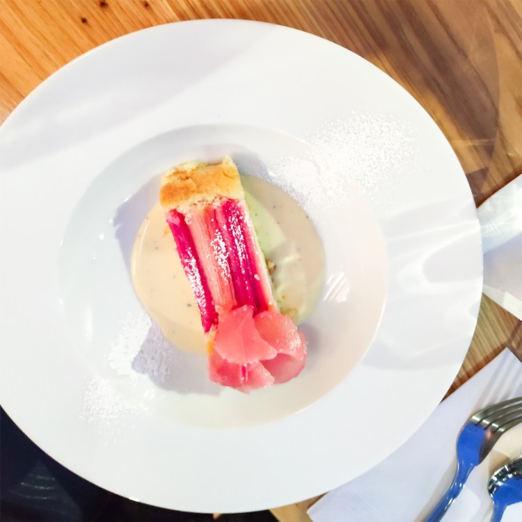 The girlfriends decided to have some desserts which looked delicious: rhubarb cake and chocolate cake.