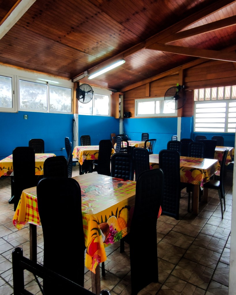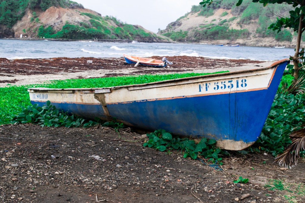 Ensuite, je suis partie faire une balade digestive le long de la plage et voir l’îlet de Sainte-Marie. Elle est rattachée à la commune via un tombolo, un banc de sable seulement visible entre Janvier et Avril. Il devient alors possible de traverser l’océan pour visiter l’ilêt. Tu ne peux pas manquer l’Eglise de Sainte-Marie « Notre Dame de l’Assomption » au sommet de la colline qui se trouve à la sortie de la ville. Elle est magnifique. Le bleu et le blanc des peintures extérieurs sont les couleurs de la Vierge Marie. Sa construction a débuté au 17éme siècle. Je trouve les Eglises aux Antilles et en Amérique latine beaucoup moins austères. Elles sont souvent blanches avec une couleurs d’accentuation vives. Malheureusement, je n’ai pas pu la visiter car une messe avait lieu.