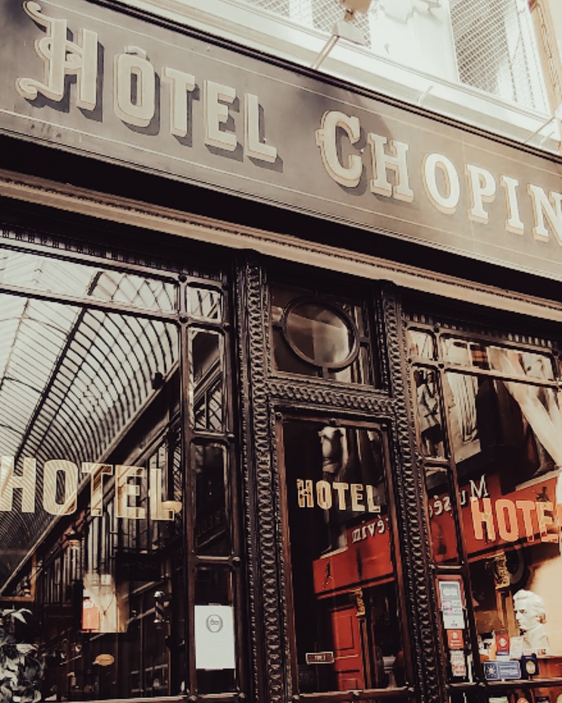 L’Hôtel Chopin est un lieu original pour passer la nuit. Certaines des boutiques les plus originales ajoutent une touche particulière à la visite : vieilles cannes et cannes, livres anciens, spécialistes du papier et bien d’autres. Rien que pour les vitrines, ça vaut le détour ! Les gourmets pourront faire une pause chez Valentin, l’incontournable salon de thé. Il est également accessible par le 9 rue de la Grange-Batelière.