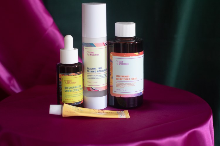 Hi! How are you? Today, I’m giving you feedback on my test of Good molecules products. The brand contacted me to test their product without requiring any articles or sharing on the networks in return. I dedicate this article to their product as long as I have no negative feedback. Otherwise, I would have abstained đ. . The press service sent me a day and night cream, an eye gel, a tonic, a complexion unifying serum. What I appreciated is that they asked me what my problems were before sending me the products. Good Molecules is a skincare company. When they contacted me to test their products, I checked their website to know more about the brand and their product ingredients. There were no red flags for me. The company’s motto is to let the products shine by their efficiency instead of relying on heavy marketing campaigns. Then, the products are vegan and cruelty-free. I received the Niacinamide Brightening Toner, the discoloration correcting serum, the Yerba Mate Wake Up Eye gel and the silicone-free priming moisturizer.