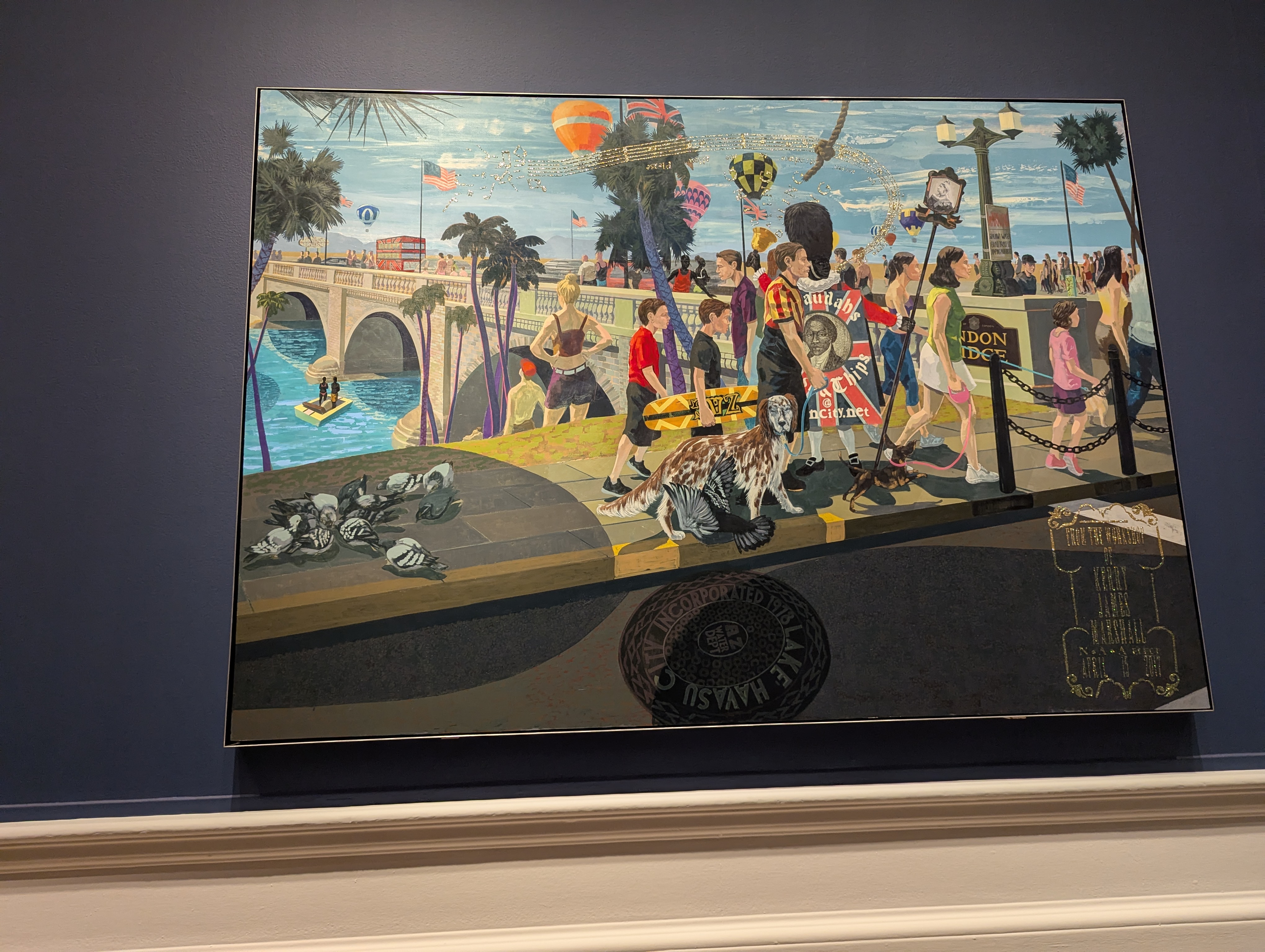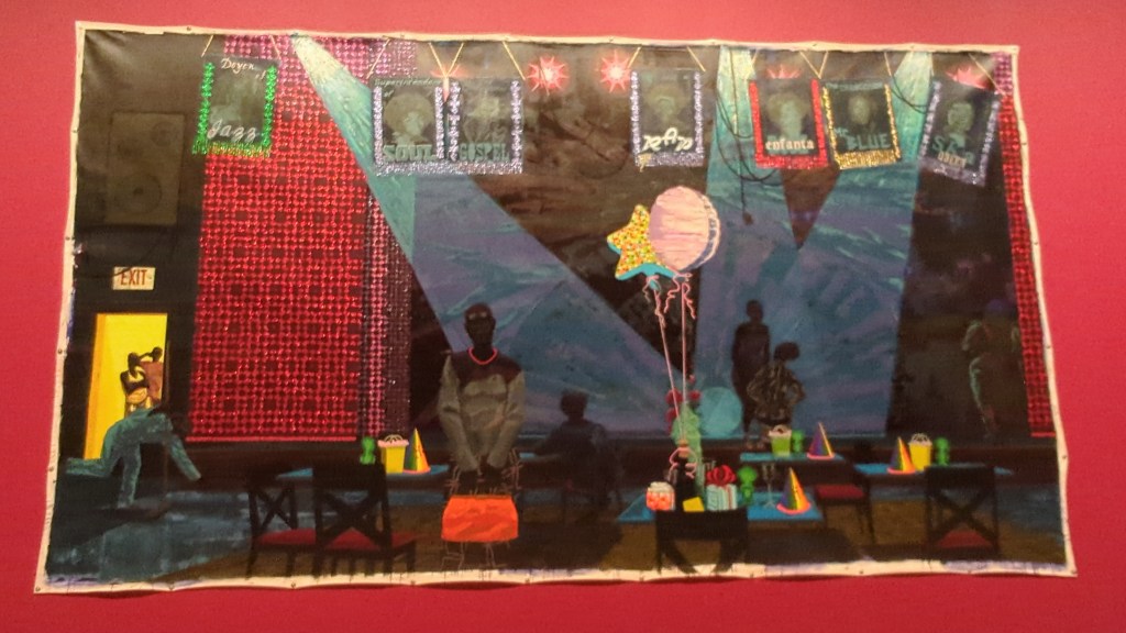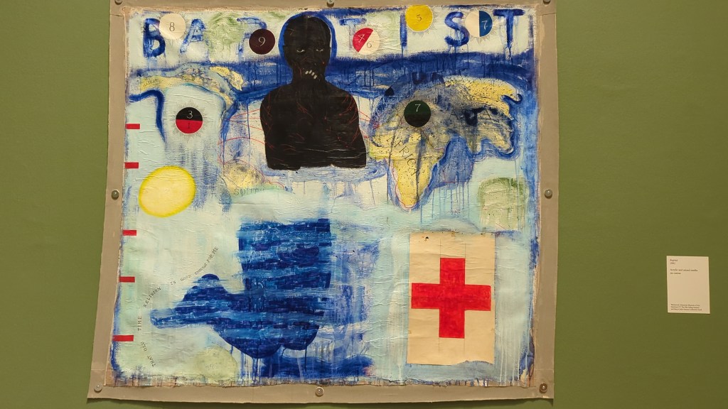 L’artiste explore également les traumatismes historiques, notamment le « Middle Passage » (la traite transatlantique). Plutôt que des drames costumés, il compose des œuvres fragmentées intégrant des symboles des religions syncrétiques comme le Vaudou et les orishas Yorubas. Des œuvres comme Great America associent le voyage en bateau à un parc d’attractions, suggérant que la vie des Noirs en Amérique oscille entre frissons et dangers.