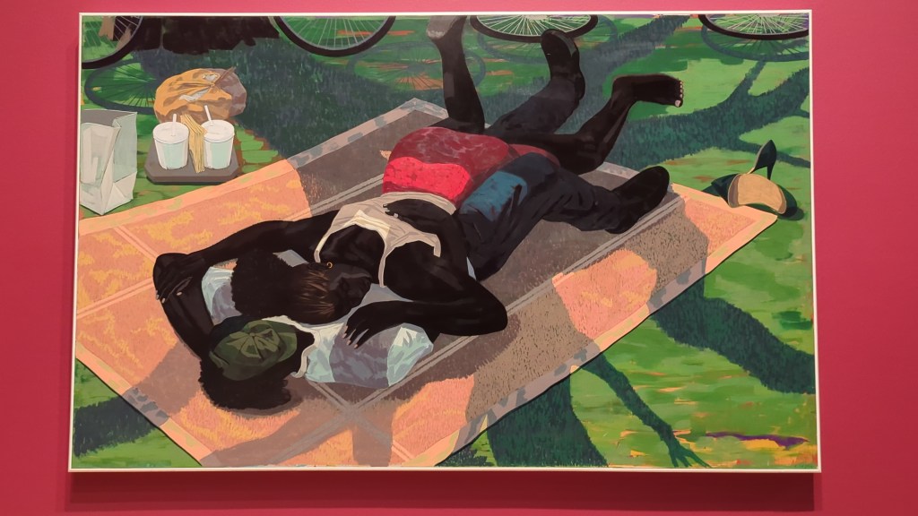 À travers l’ensemble de son œuvre, qu’il s’agisse de portraits intimes, de scènes de genre ou de fresques historiques, Kerry James Marshall force le spectateur à confronter l’absence noire dans l’histoire de l’art et à reconnaître la richesse de l’expérience noire.